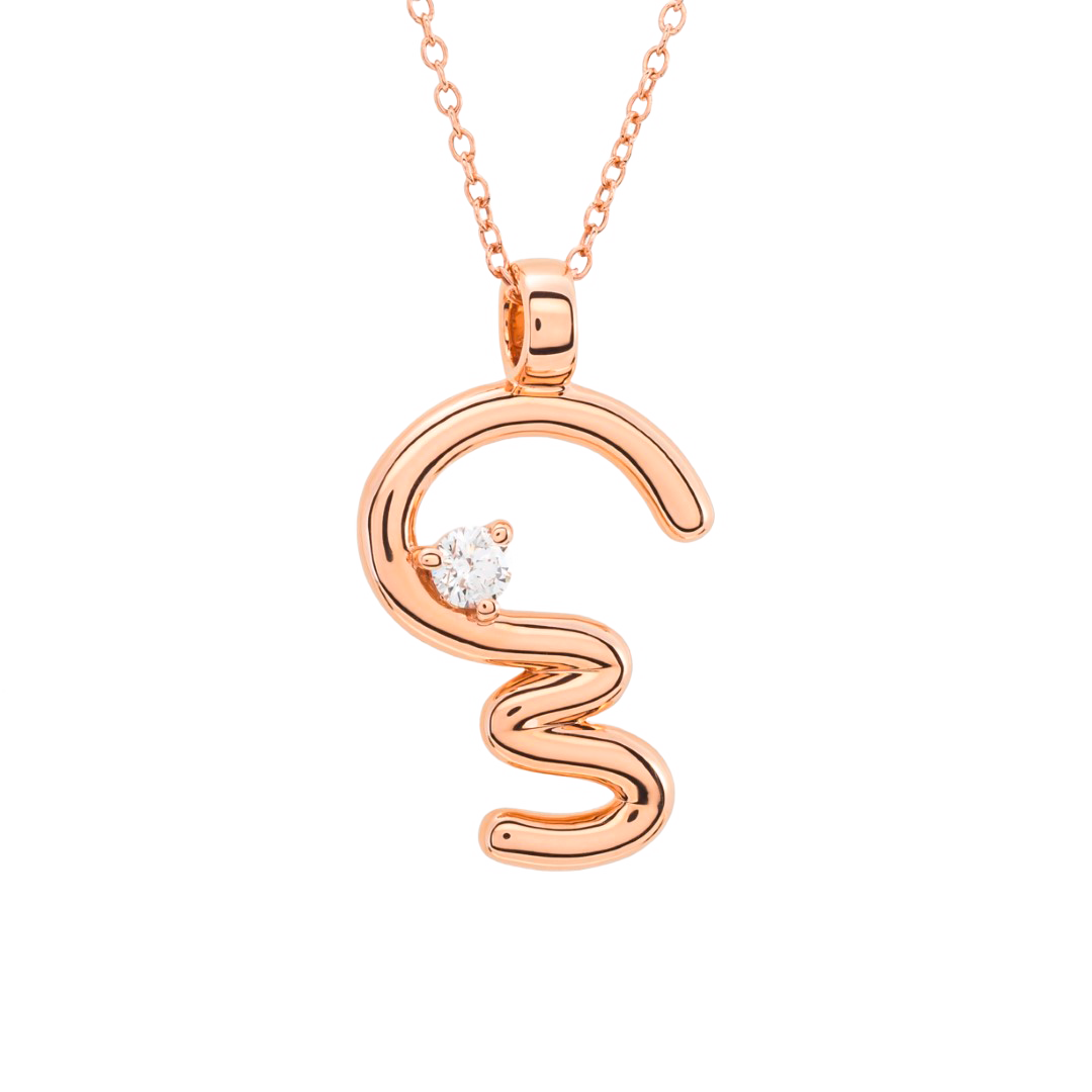 Pendentif or rose 18 carats, diamant couleur GH, pureté SI 0.06 ct, 1 pierres, chaîne rolo 42cm fermoir mousqueton