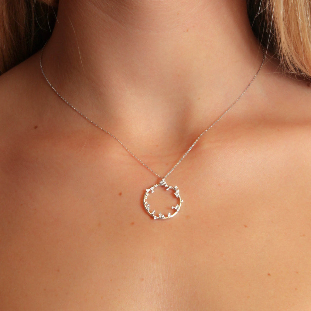 Pendentif or rose 18 carats, diamant couleur GH, pureté SI 0.32 ct, 32 pierres, chaîne rolo 45cm fermoir mousqueton