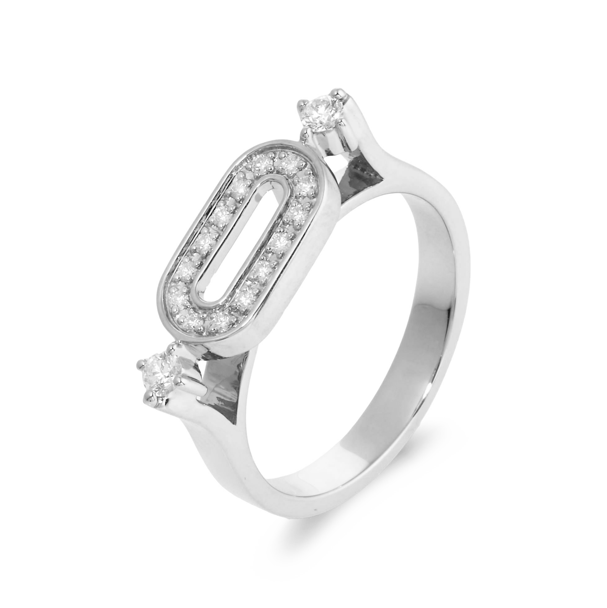 Bague or blanc 18 carats, diamant couleur GH, pureté SI 0.20 ct, 16 pierres