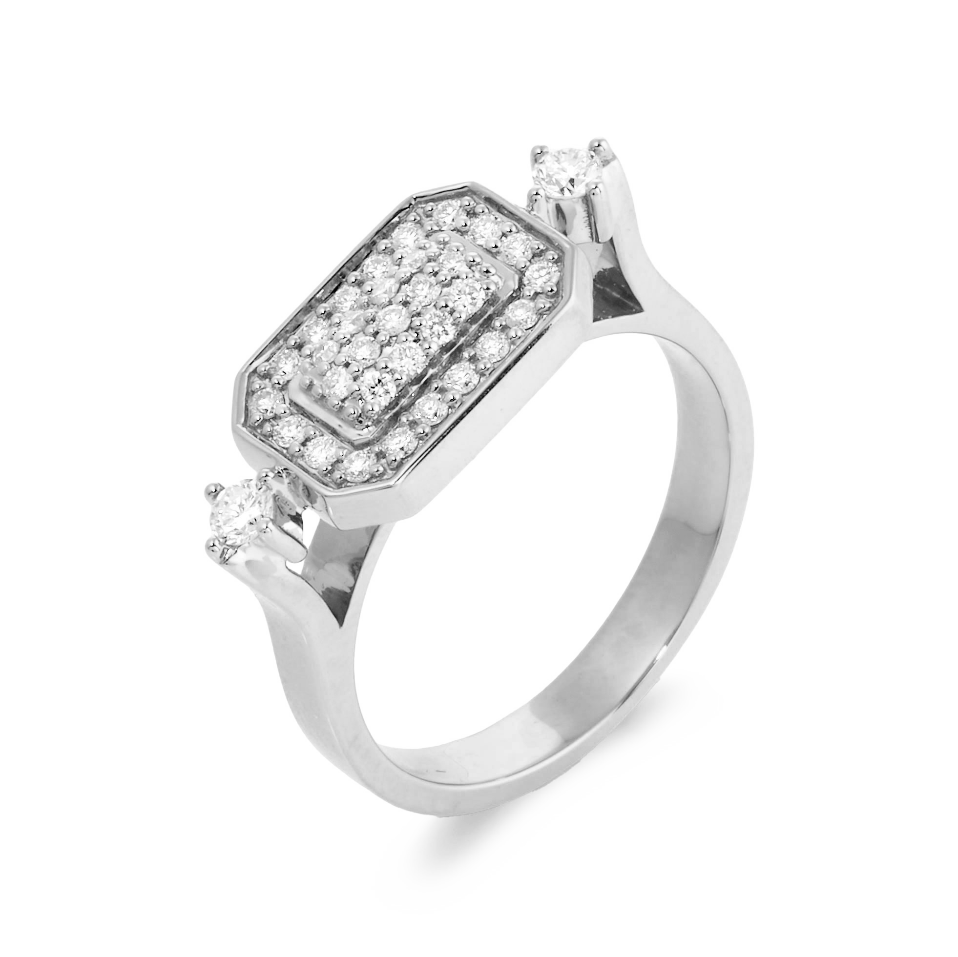 Bague or blanc 18 carats, diamant couleur GH, pureté SI 0.32 ct, 33 pierres
