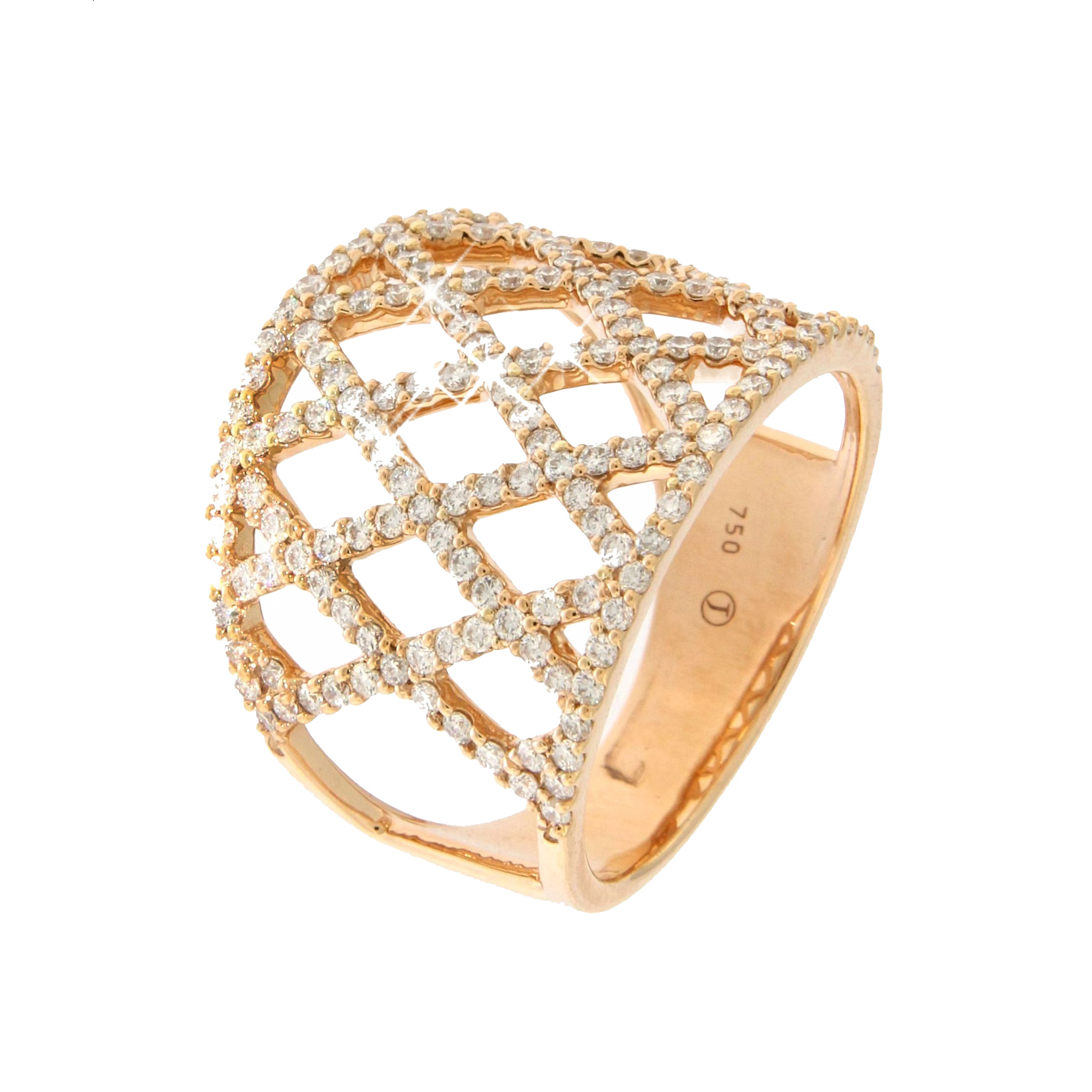 Bague or rose 18 carats, diamant couleur GH, pureté SI 1.00 ct, 167 pierres