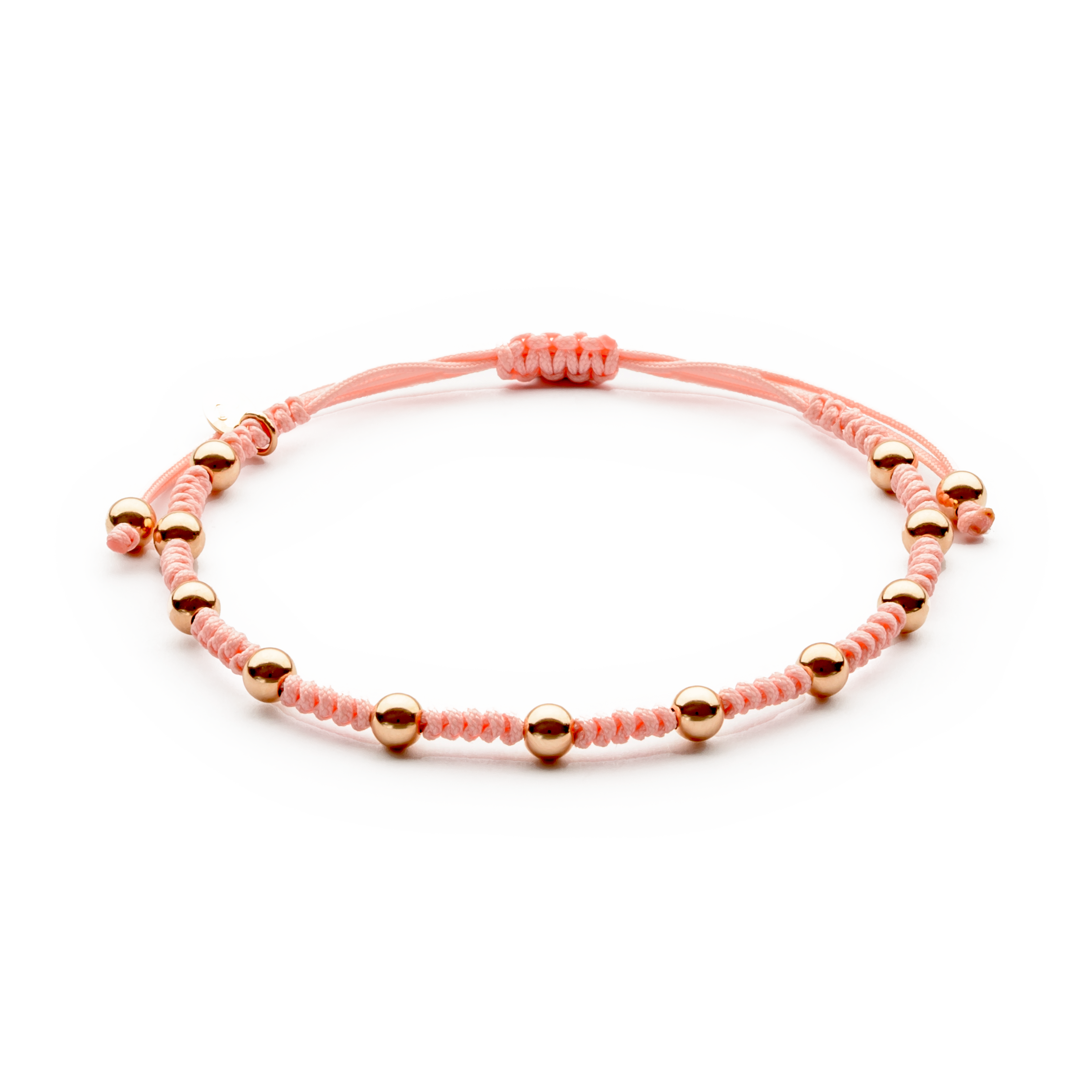 18K rose gold bracelet, 4mm bead, Adjustable nylon cord from 15cm to 25cm