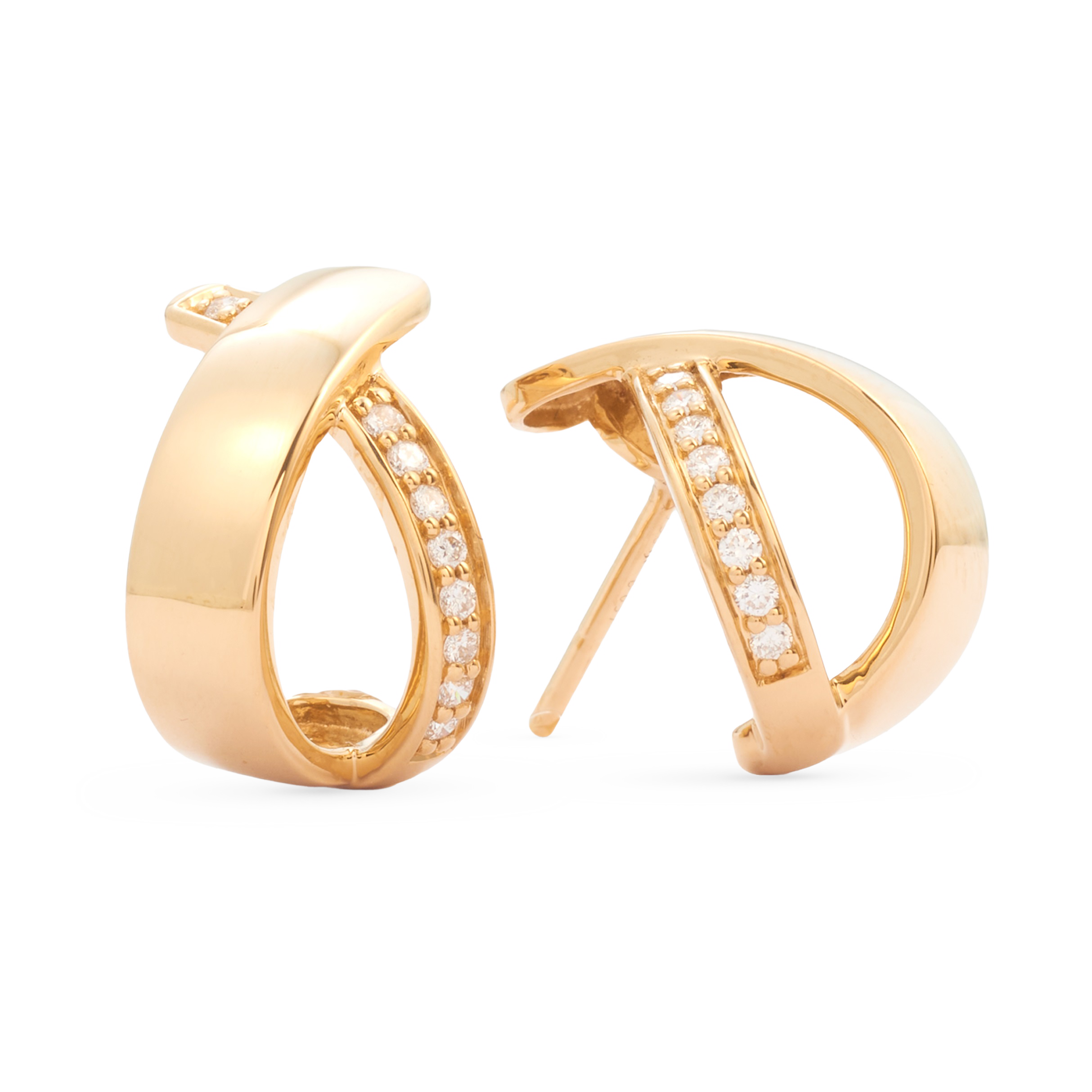 Collection Leaves and crossed Earring Gold, Diamond 0.14 ct, designer