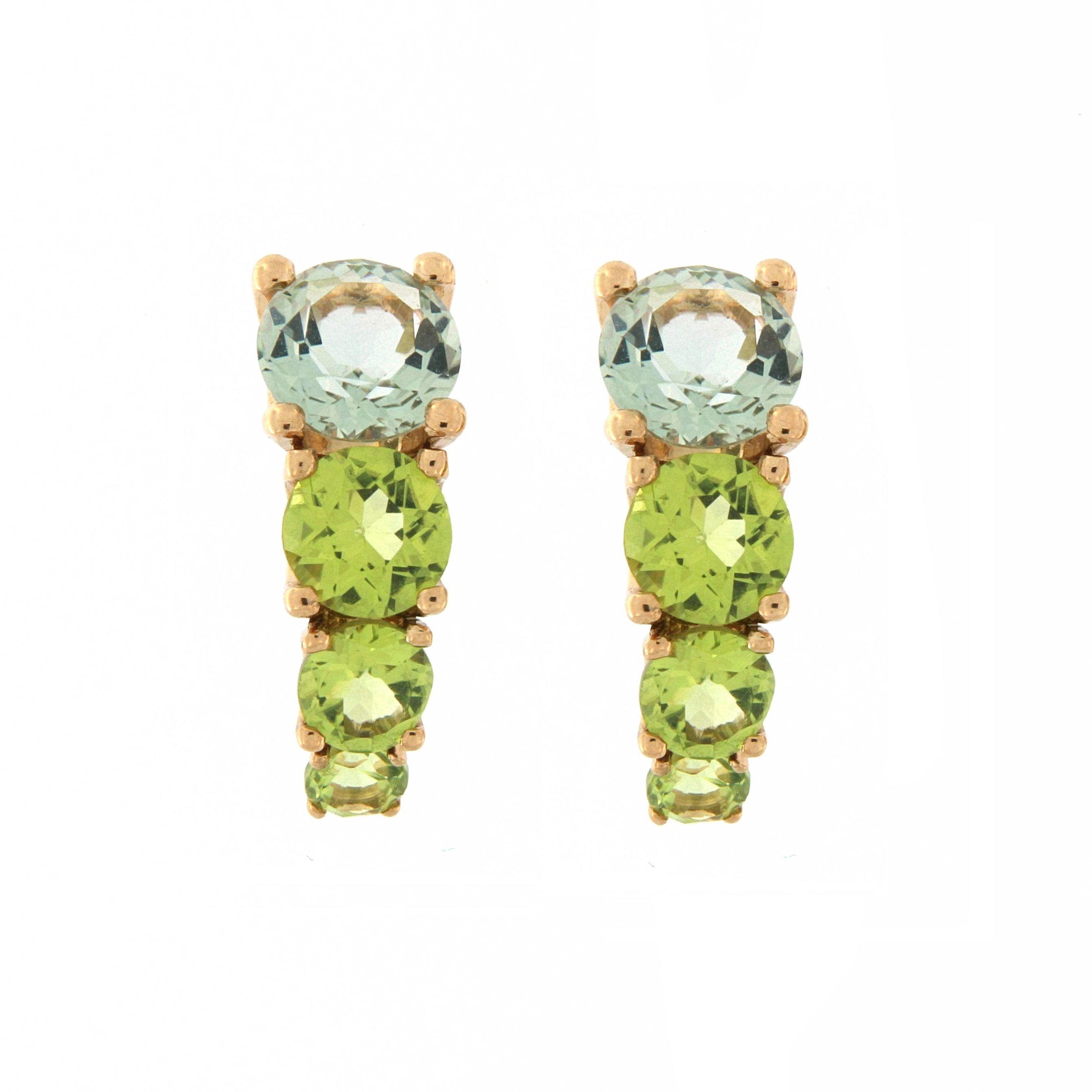 18K rose gold earring, prasiolite and peridot, pressure clasp