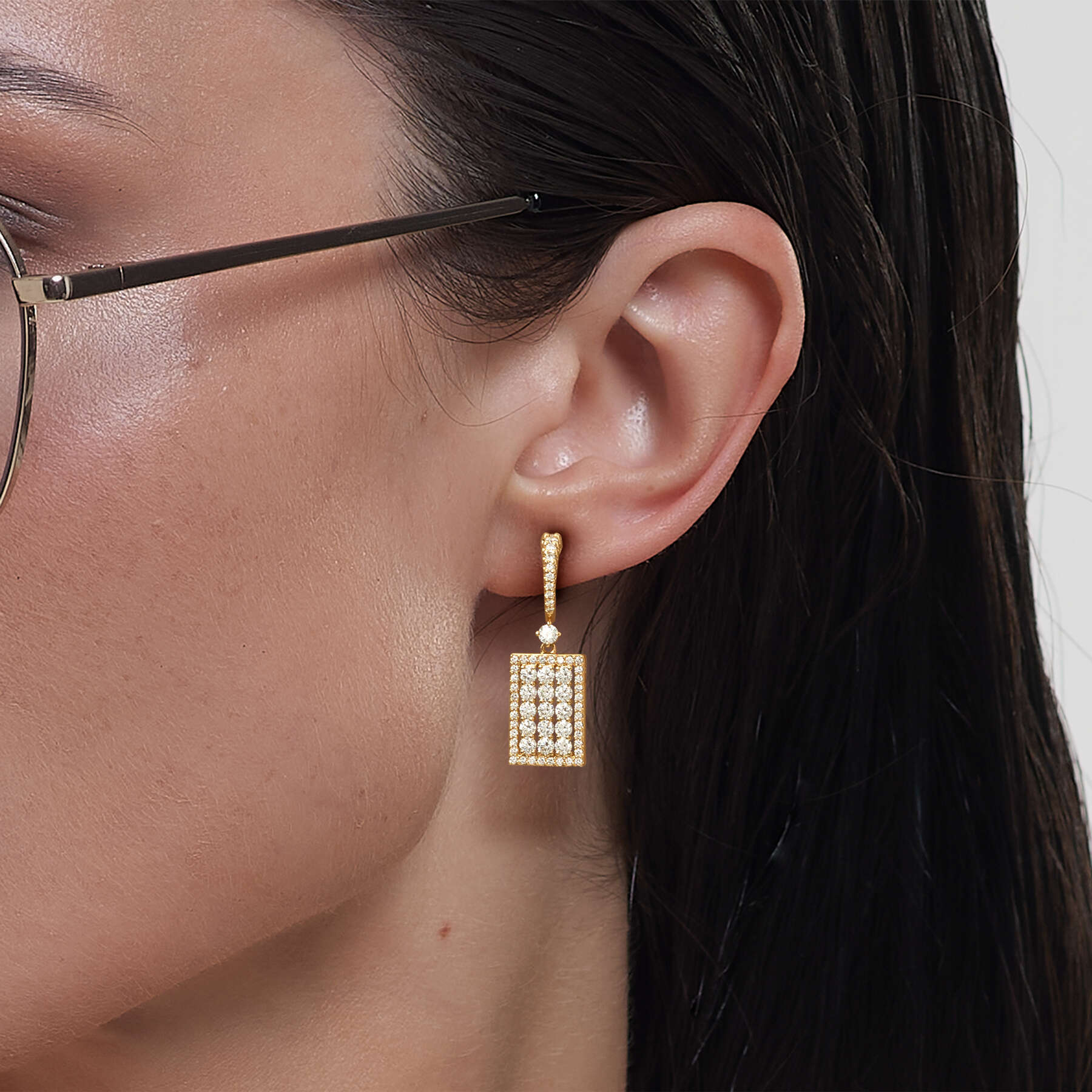 18K yellow gold earring, diamond color GH, clarity SI 2.88 ct, 124 stones, pressure clasp