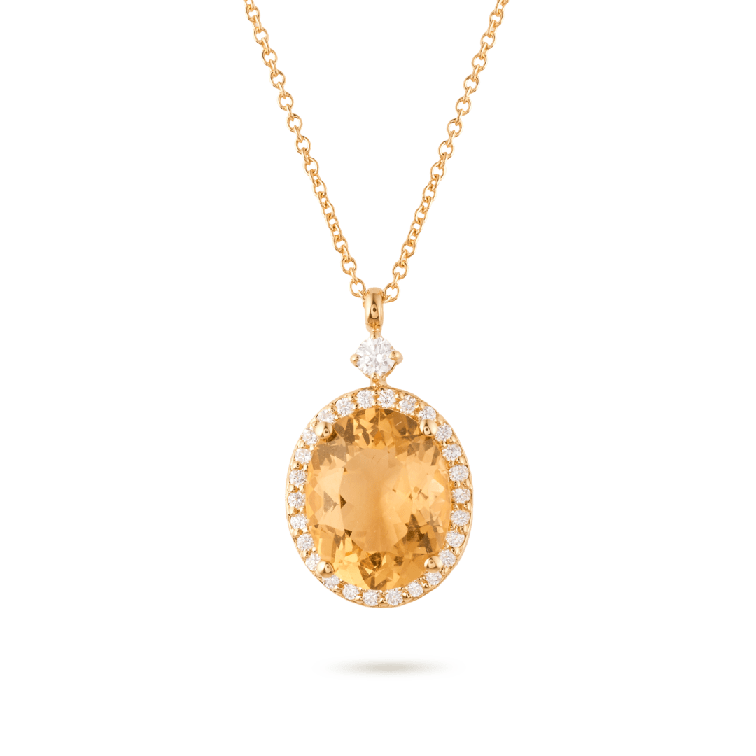 Collection Iconic Pendant Gold, Diamond 0.15 ct, citrine, halo