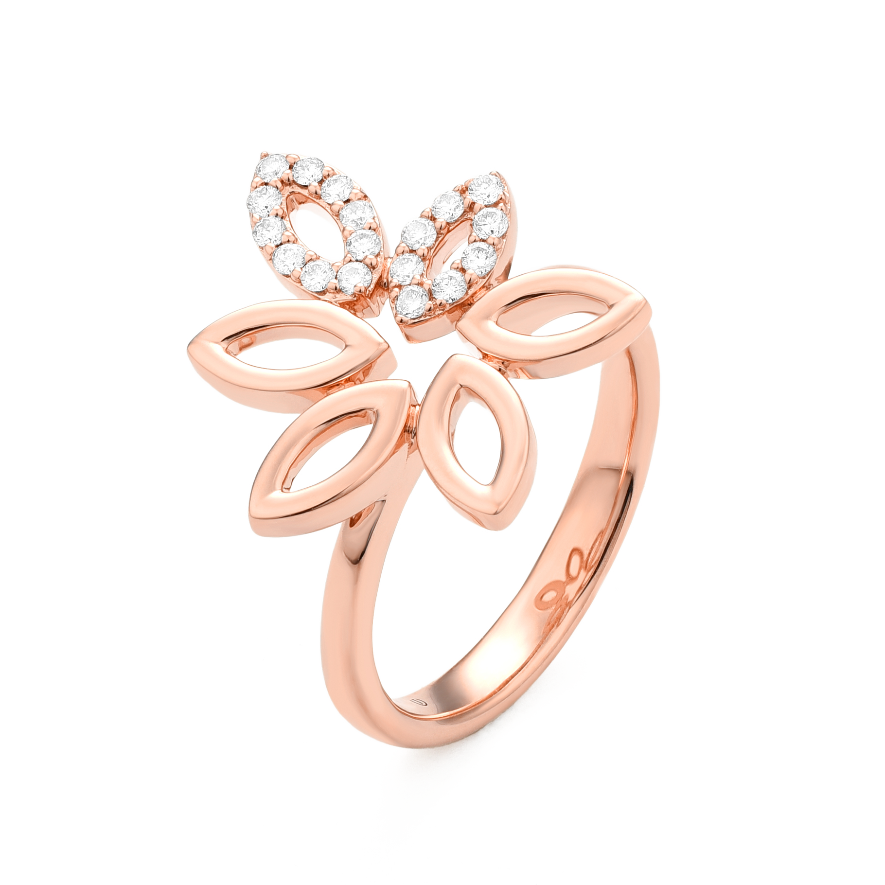 Collection Leaves and crossed Ring Gold, Diamond 0.21 ct, designer