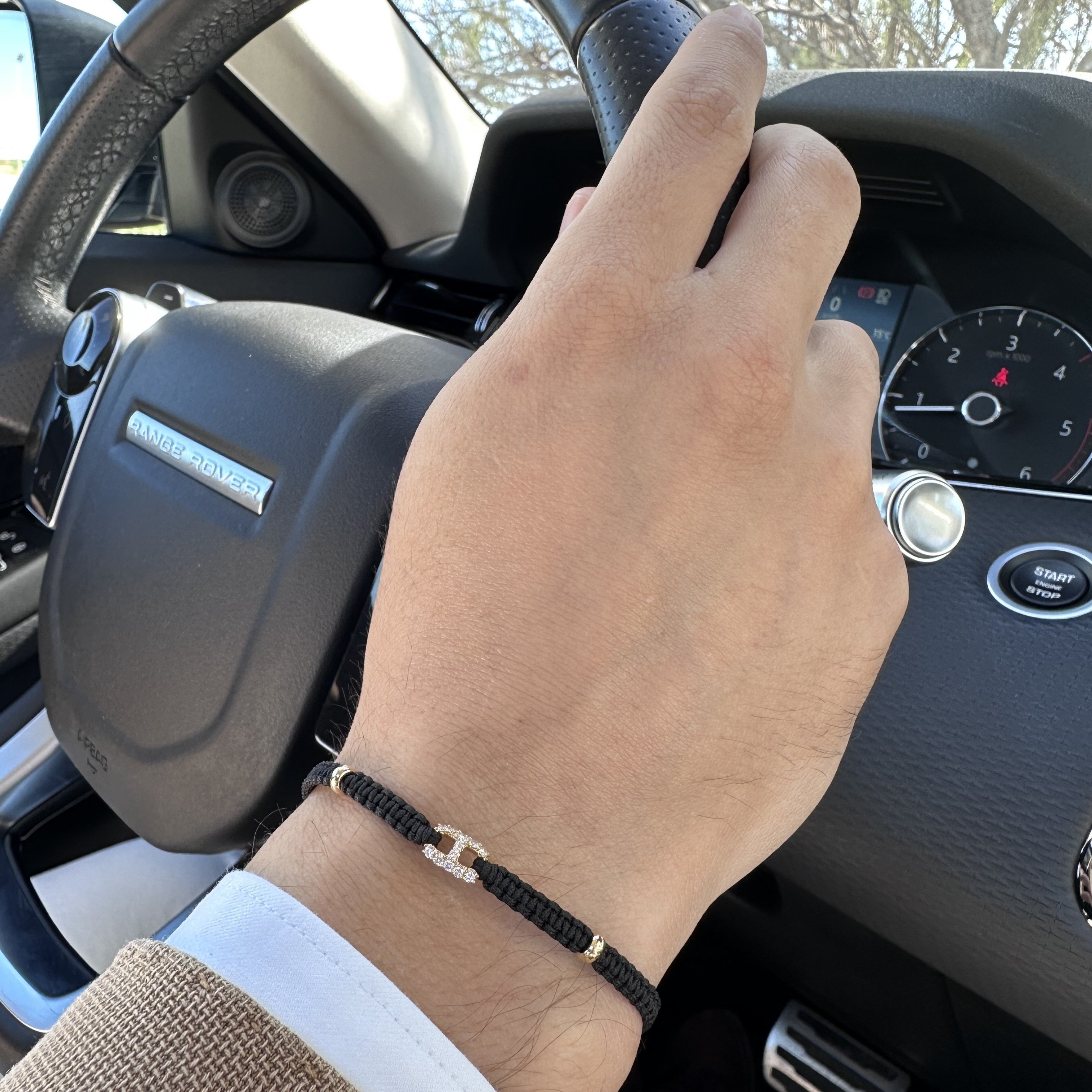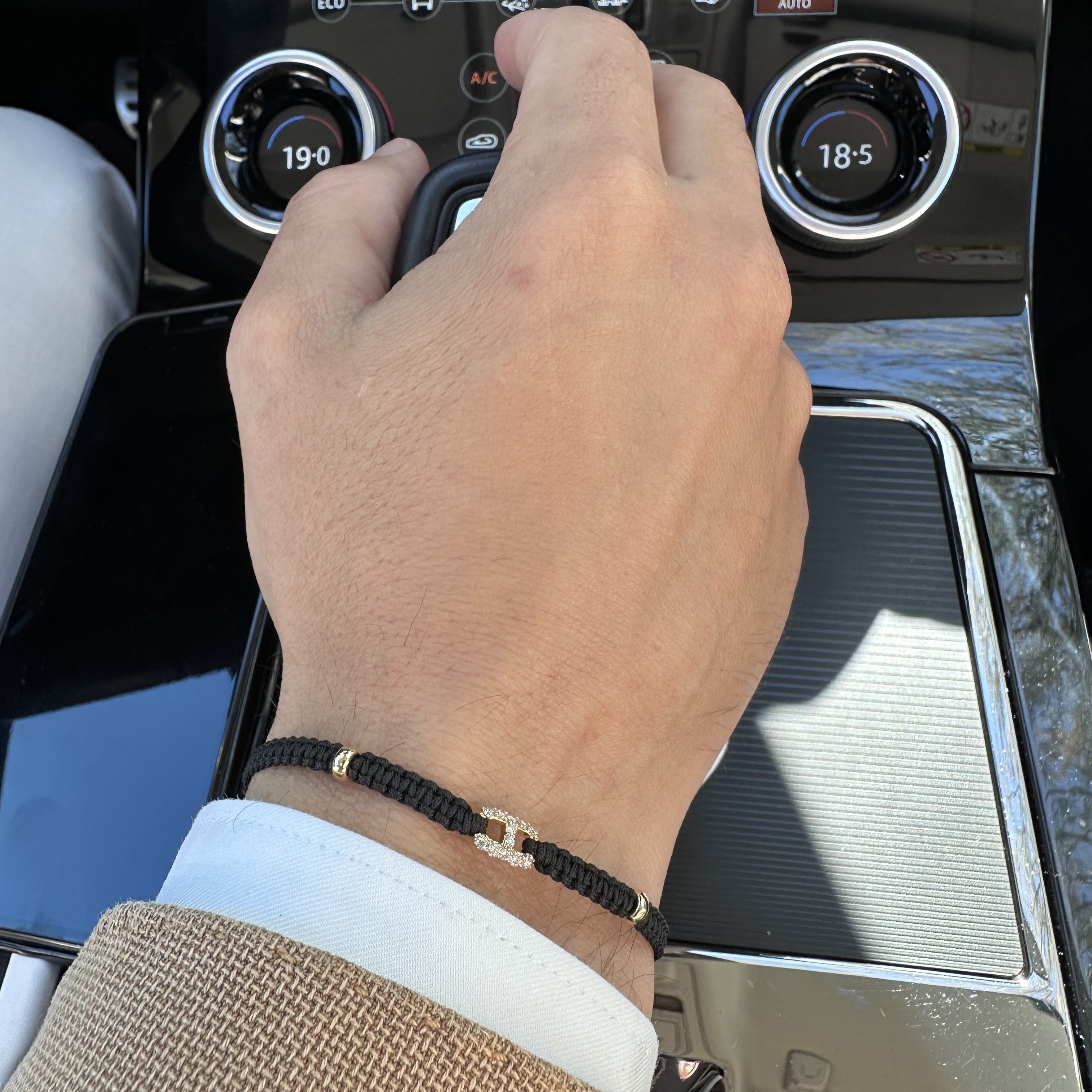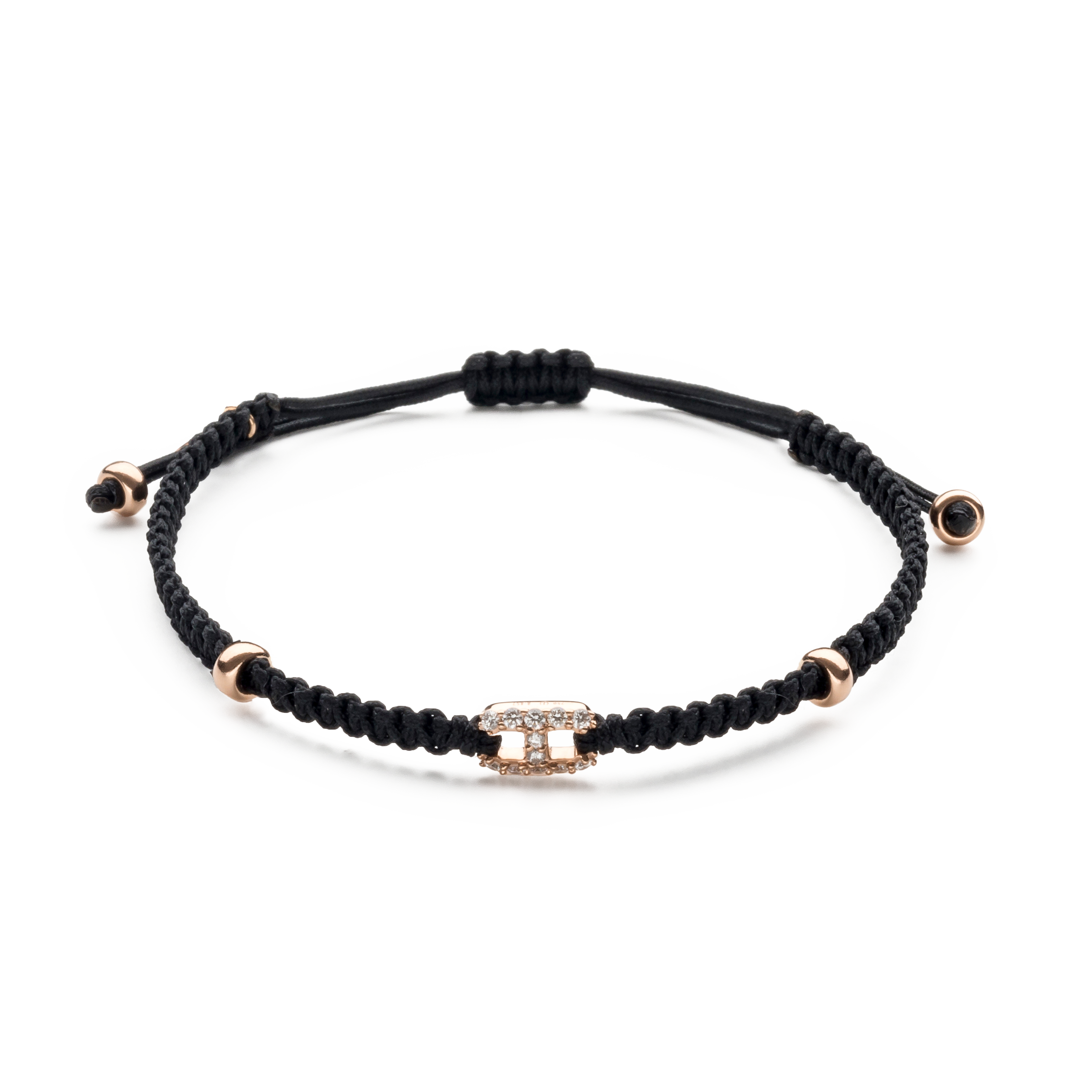 18K rose gold bracelet, 12 stones, diamond link, Adjustable nylon cord from 15cm to 25cm