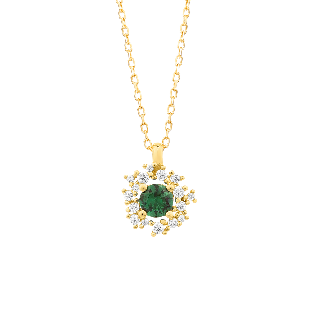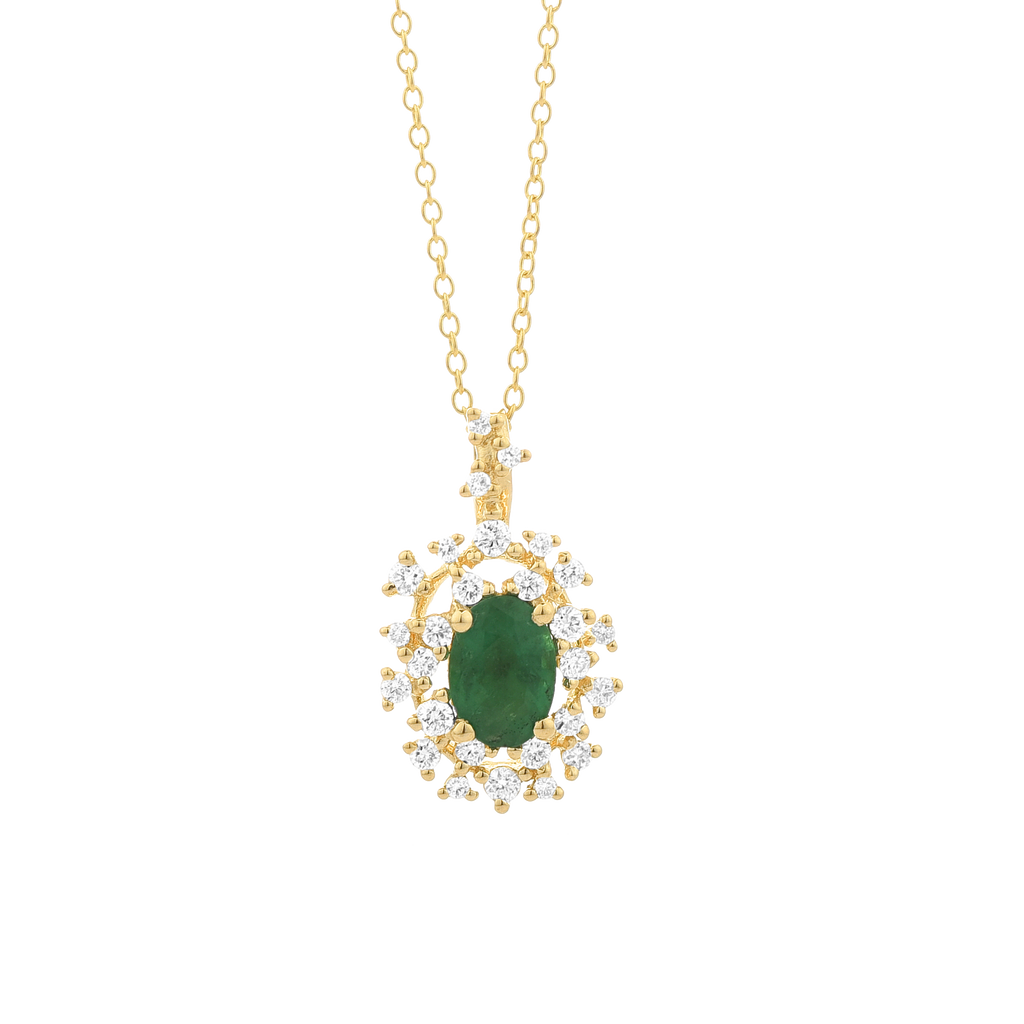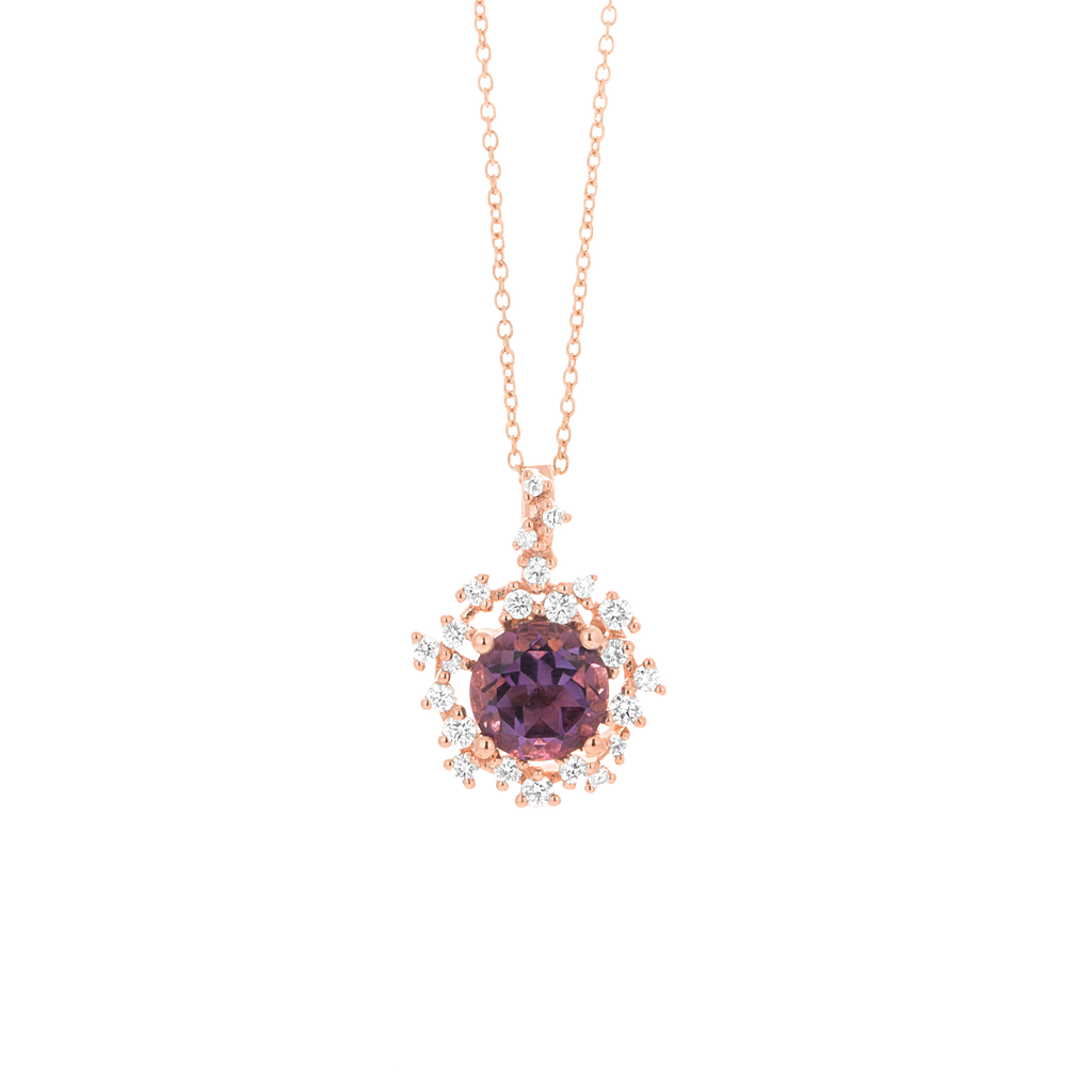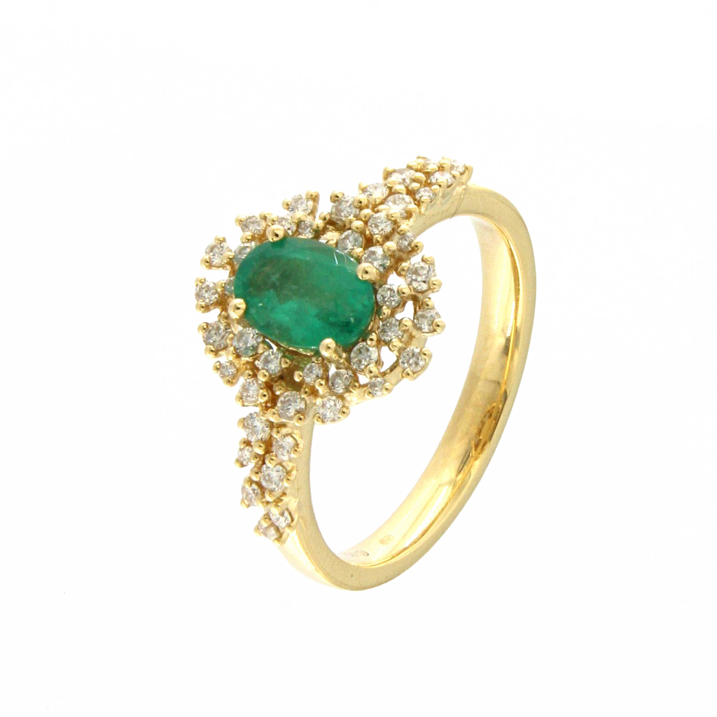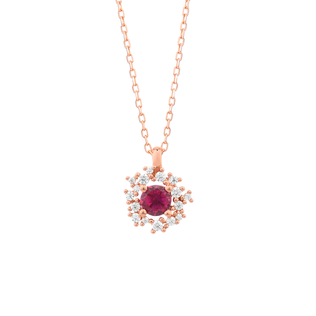 Armonia tra tradizione e modernità: gli aloni classici incontrano l'eleganza contemporanea con diamanti disposti artisticamente attorno a vivaci gemme centrali.
