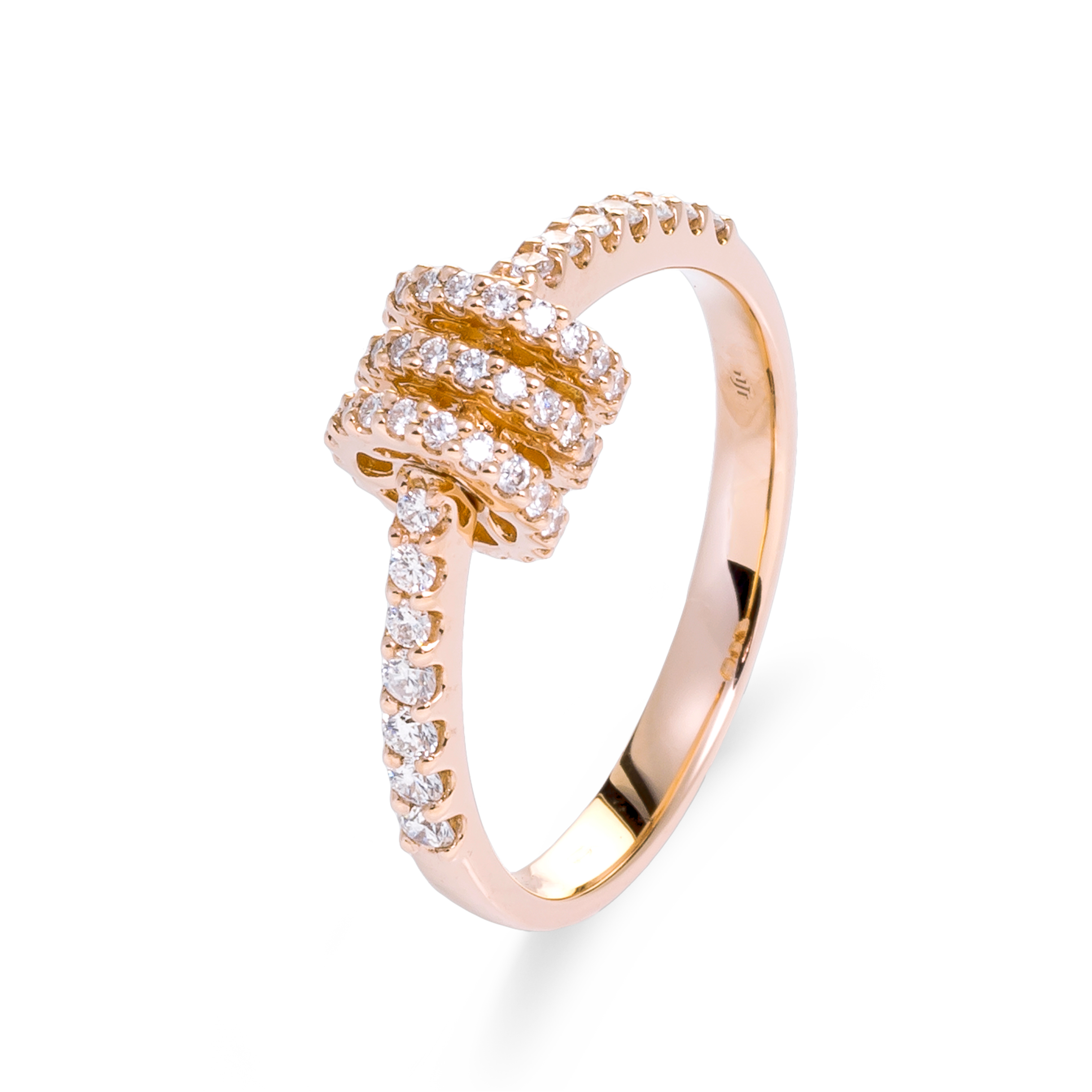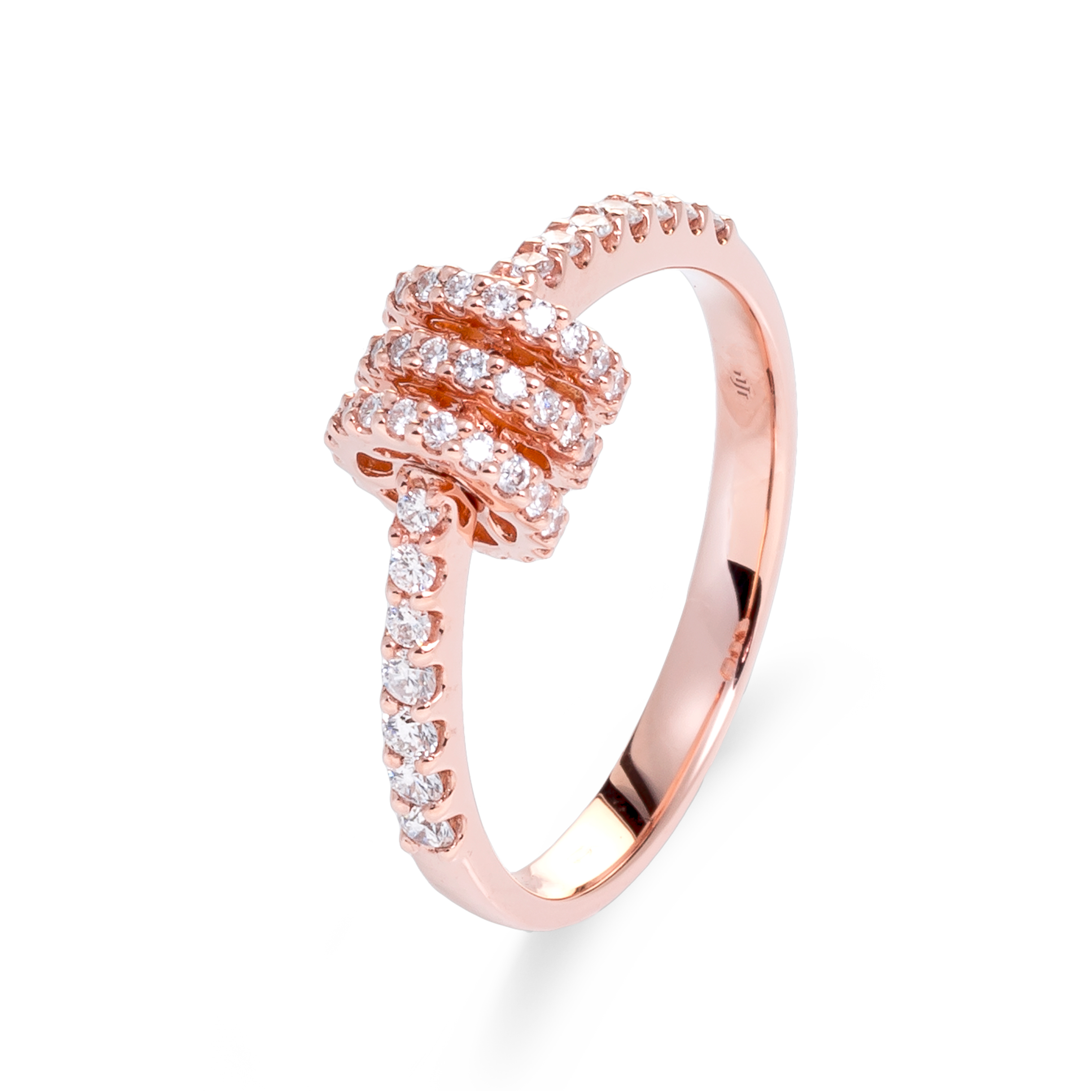 18K rose gold ring, diamond color GH, clarity SI 0.49 ct, 68 stones