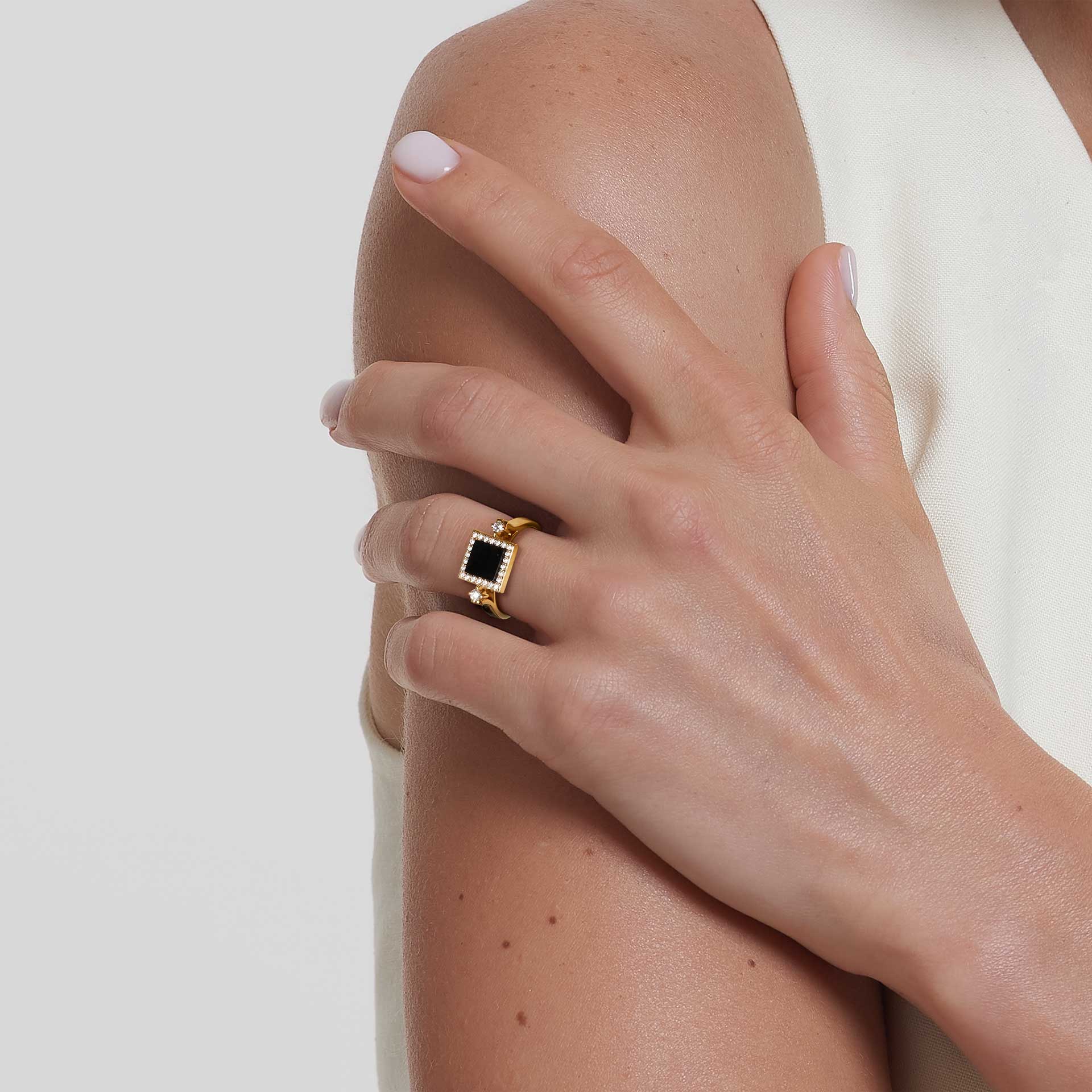 Collection Timeless Ring Gold, Diamond 0.24 ct, onyx, designer
