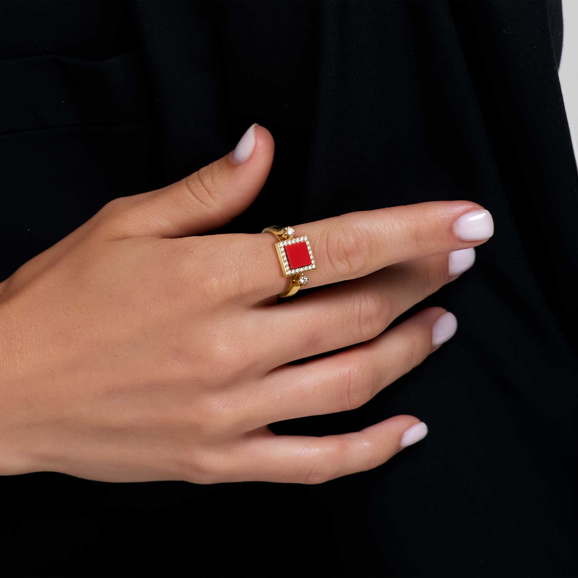 Collection Timeless Ring Gold, Diamond 0.24 ct, coral p, designer