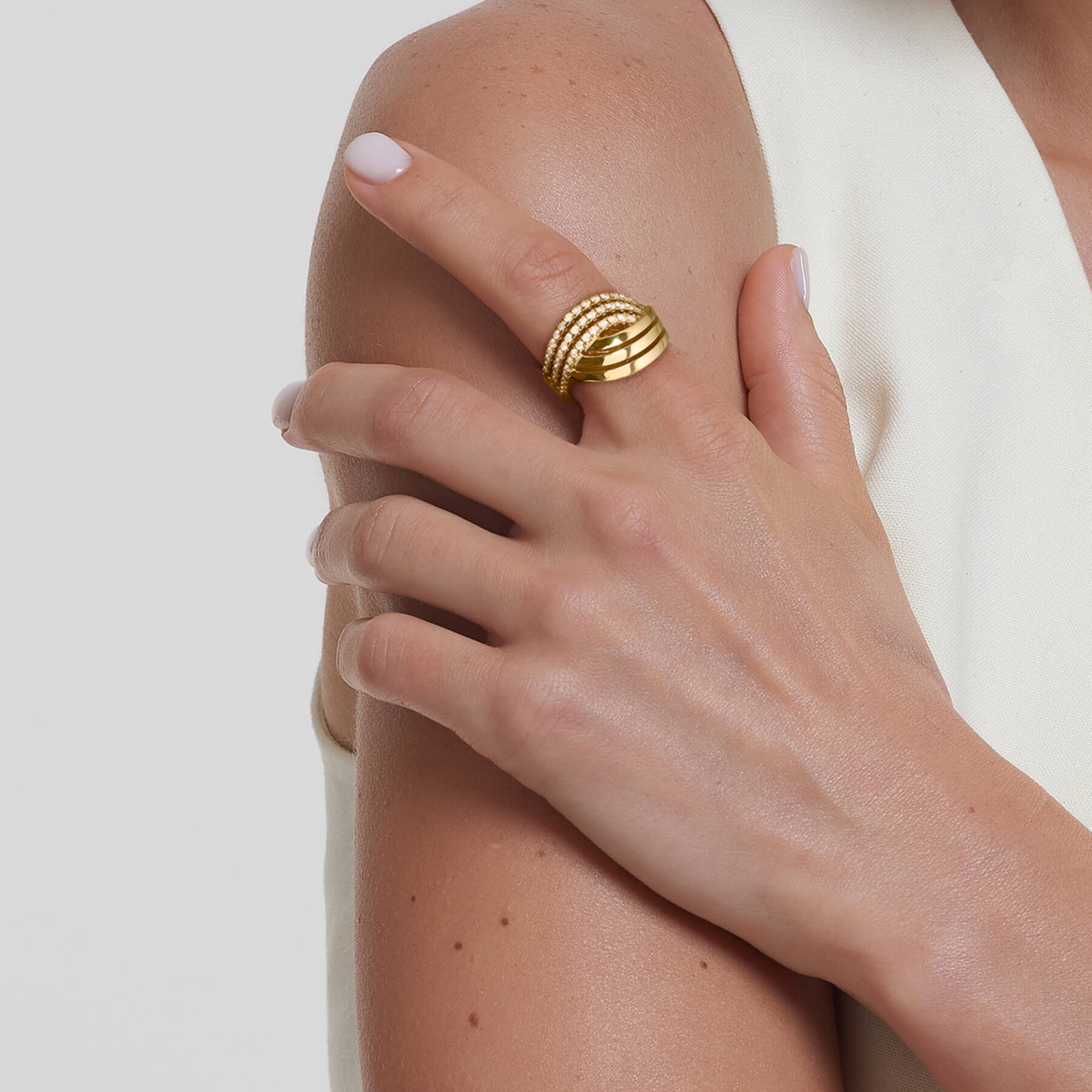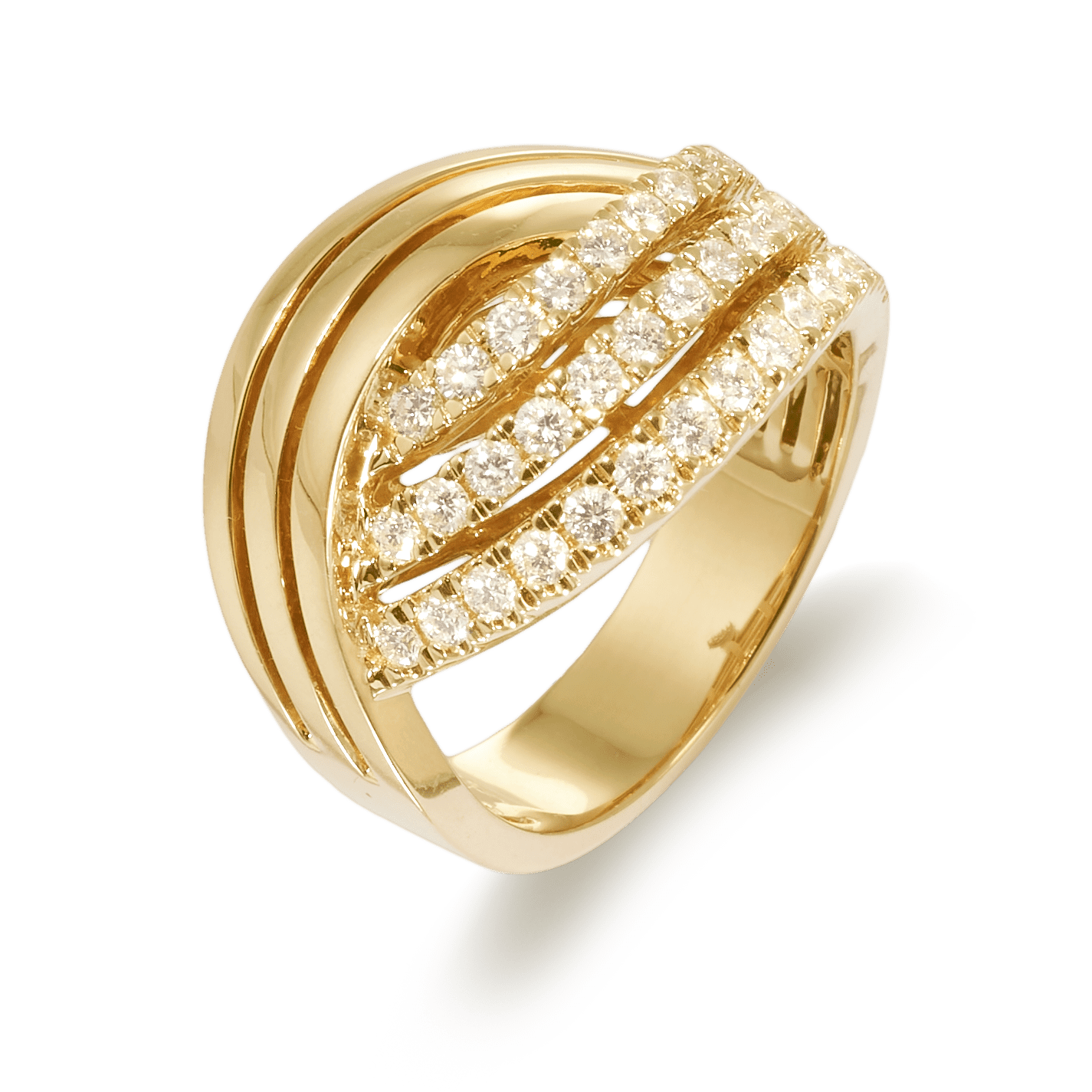 18K yellow gold ring, diamond color GH, clarity SI 0.70 ct, 48 stones