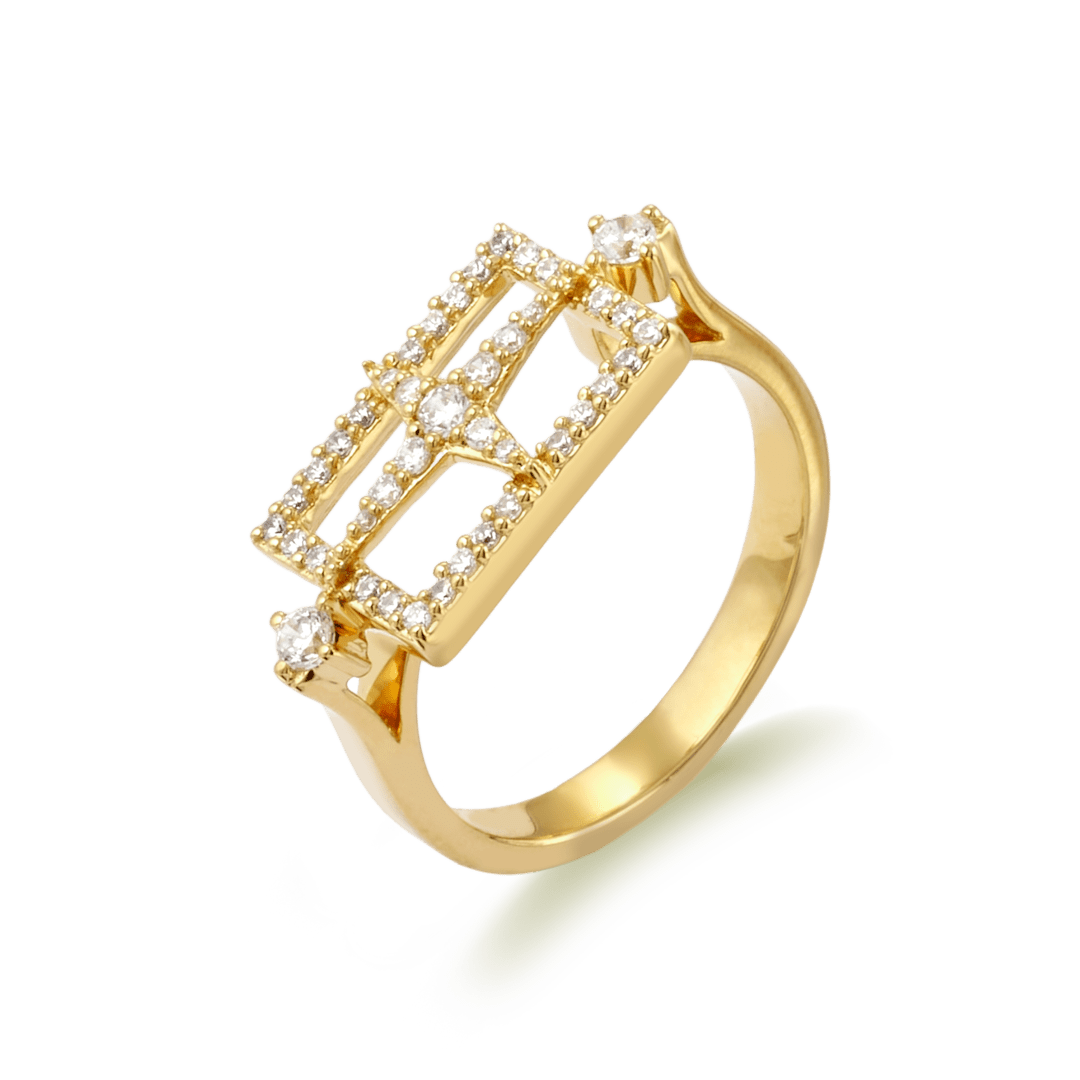 18K yellow gold ring, diamond color GH, clarity SI 0.31 ct, 41 stones