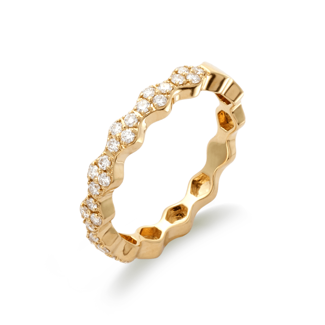 18K yellow gold ring, diamond color GH, clarity SI 0.34 ct, 28 stones