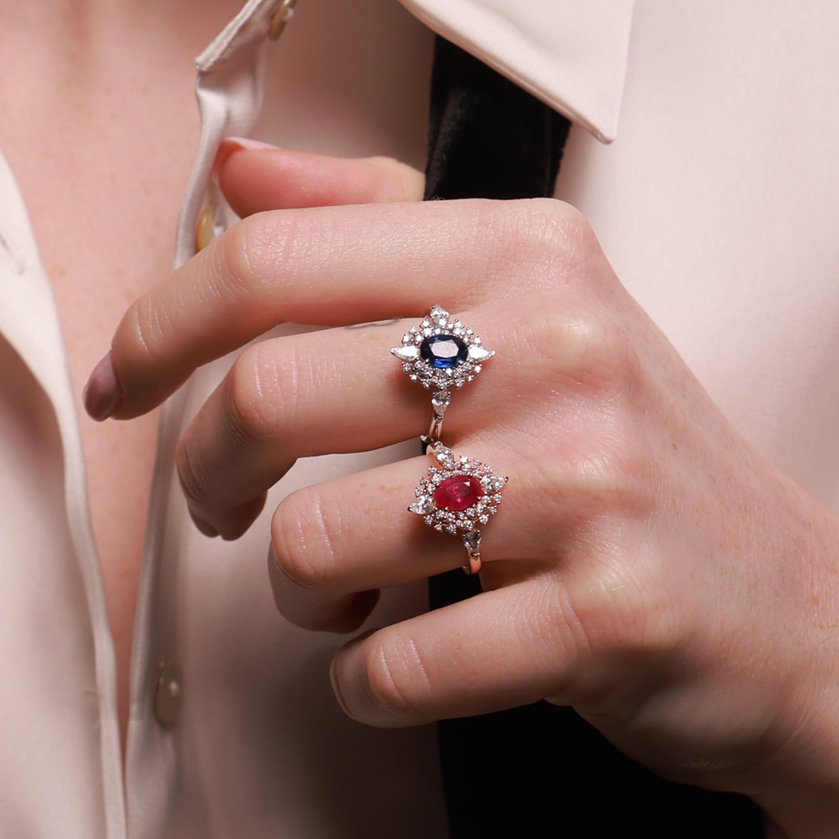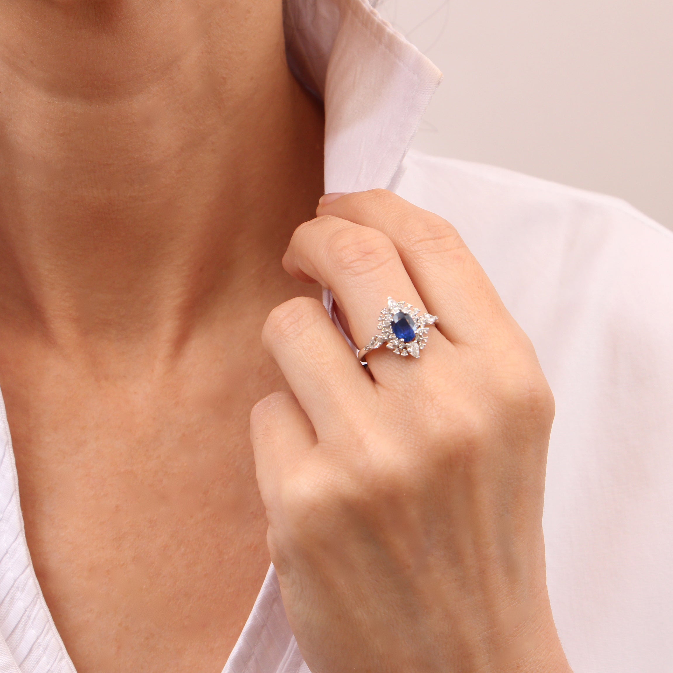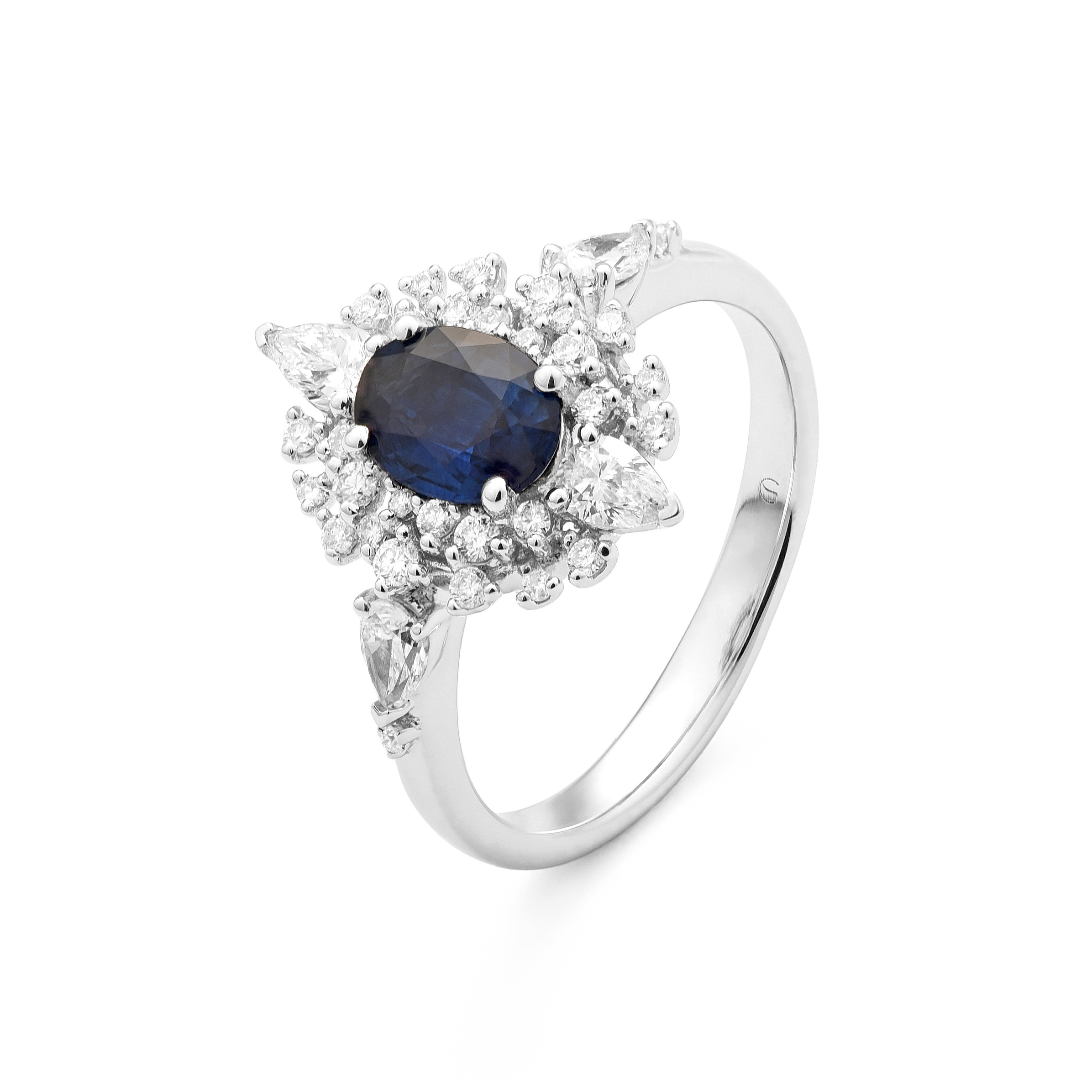 Collection Princess Ring Gold, Diamond 0.22 ct and diamond 0.40 ct, sapphire, halo