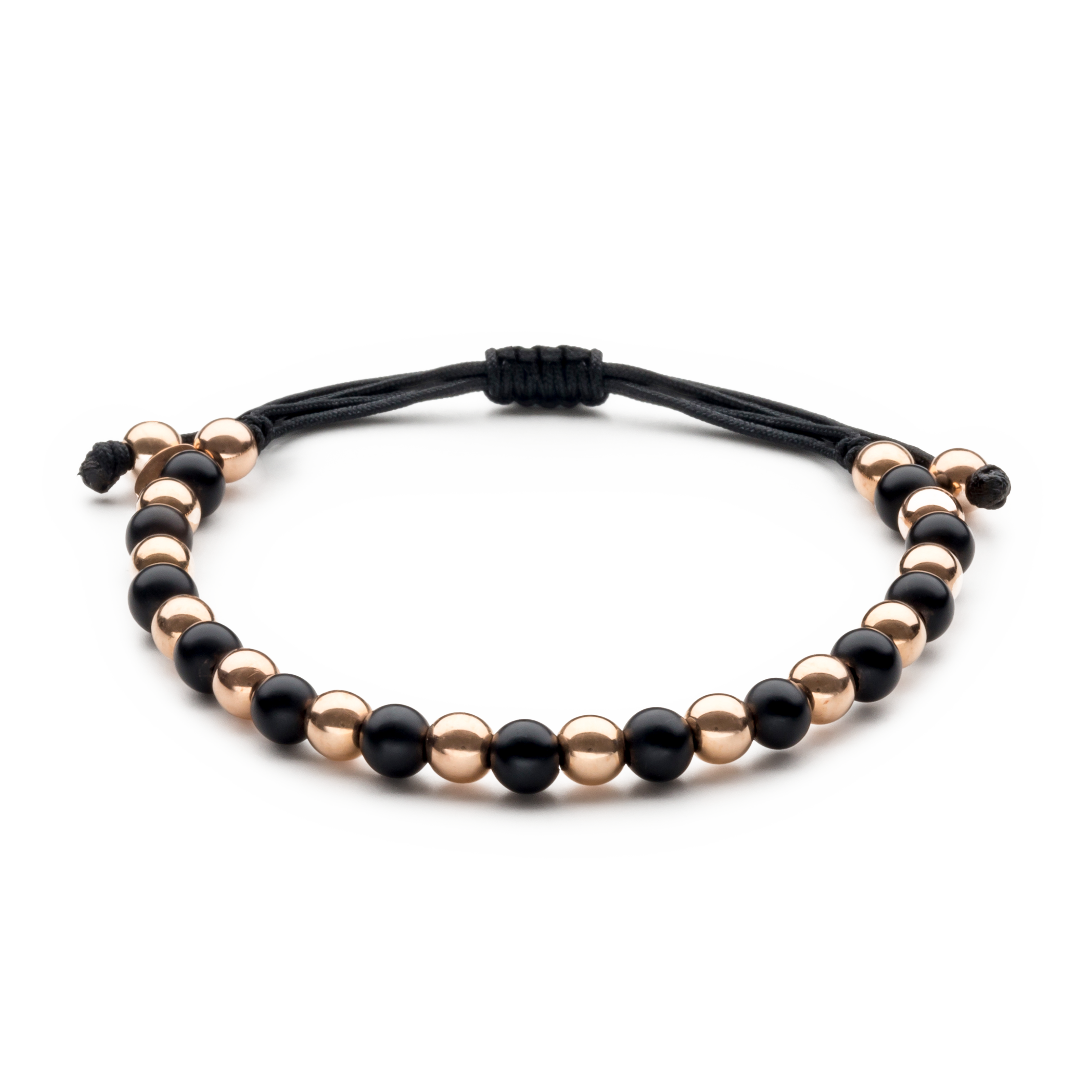 18K rose gold bracelet, onyx, 5mm bead, Adjustable nylon cord from 15cm to 25cm