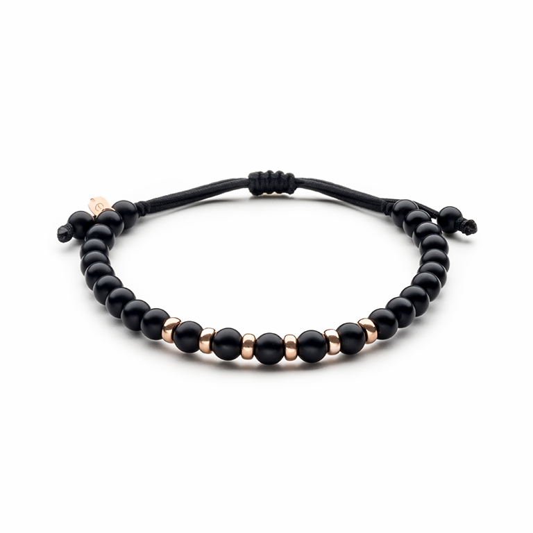 18K rose gold bracelet, onyx, Adjustable nylon cord from 15cm to 25cm