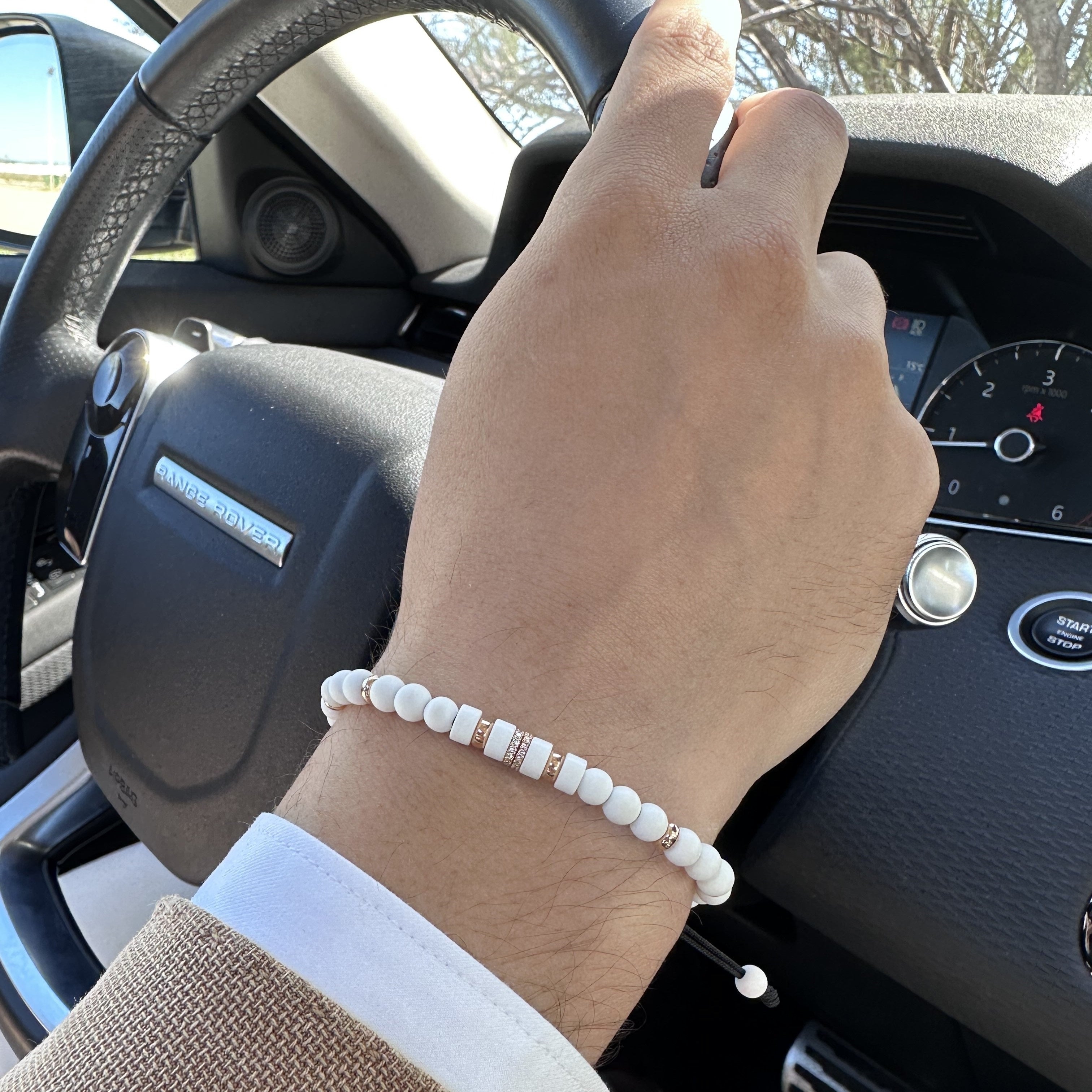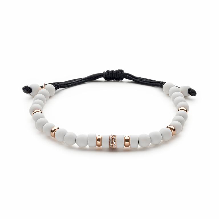 18K rose gold bracelet, agate p, 28 stones, 8/8 cut diamond wheel, Adjustable nylon cord from 15cm to 25cm