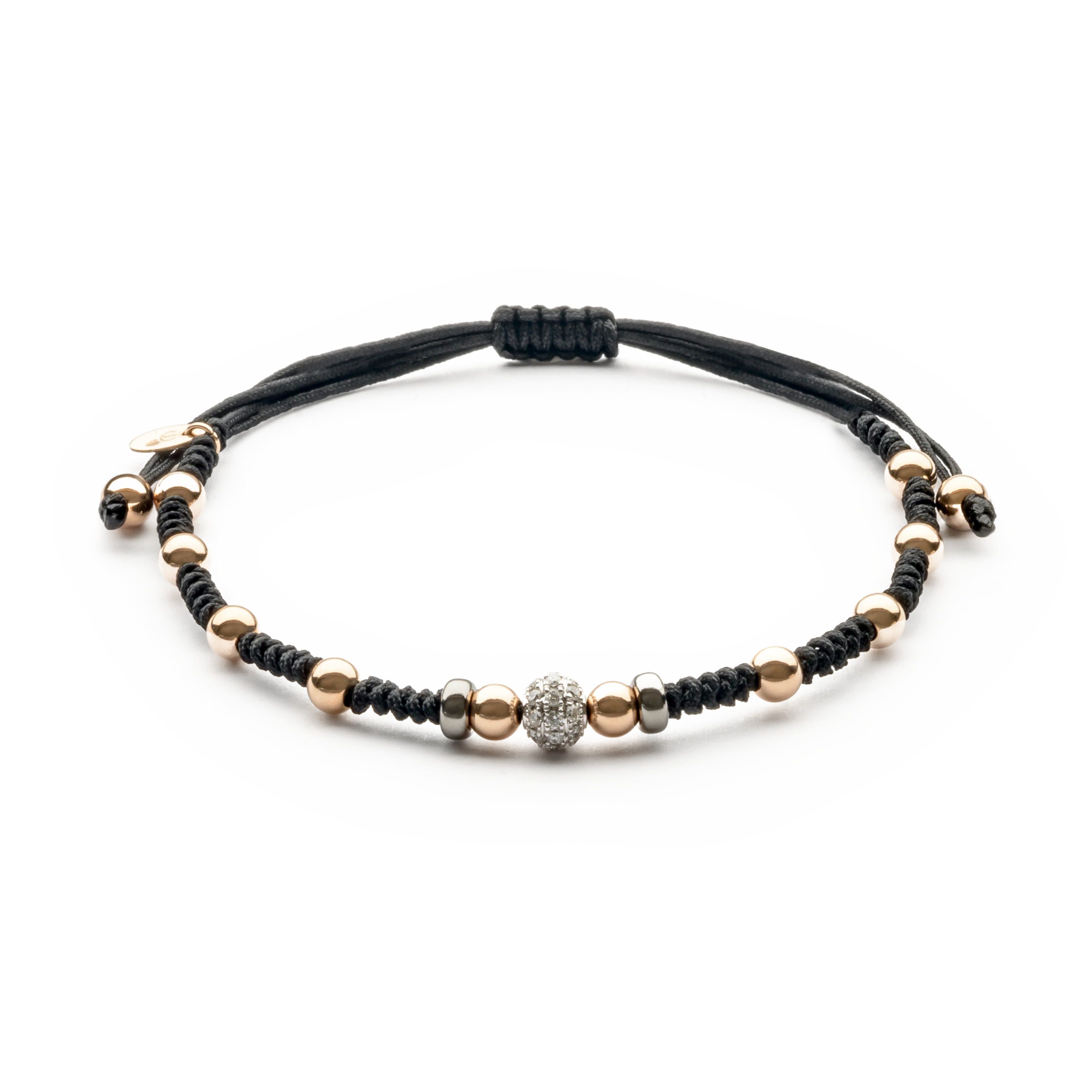 18K rose gold bracelet, 26 stones, 6mm pavé diamonds bead 4mm bead, Adjustable nylon cord from 15cm to 25cm