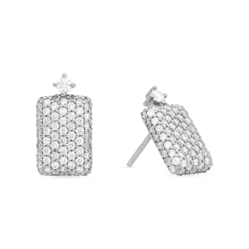 18K white gold earring, diamond color GH, clarity SI 1.18 ct, 156 stones, pressure clasp