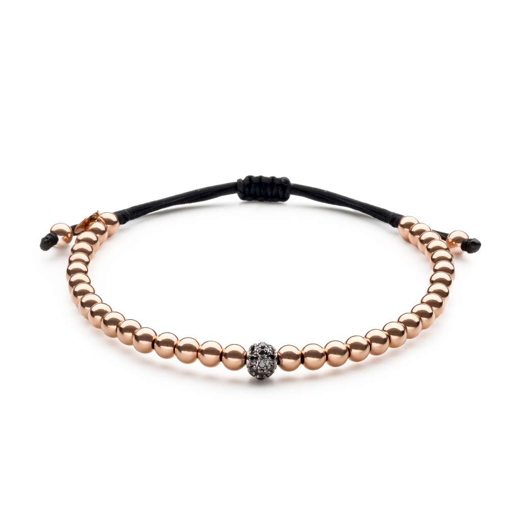 18K rose gold bracelet, 26 stones, 6mm pavé black diamonds bead 4mm bead, Adjustable nylon cord from 15cm to 25cm