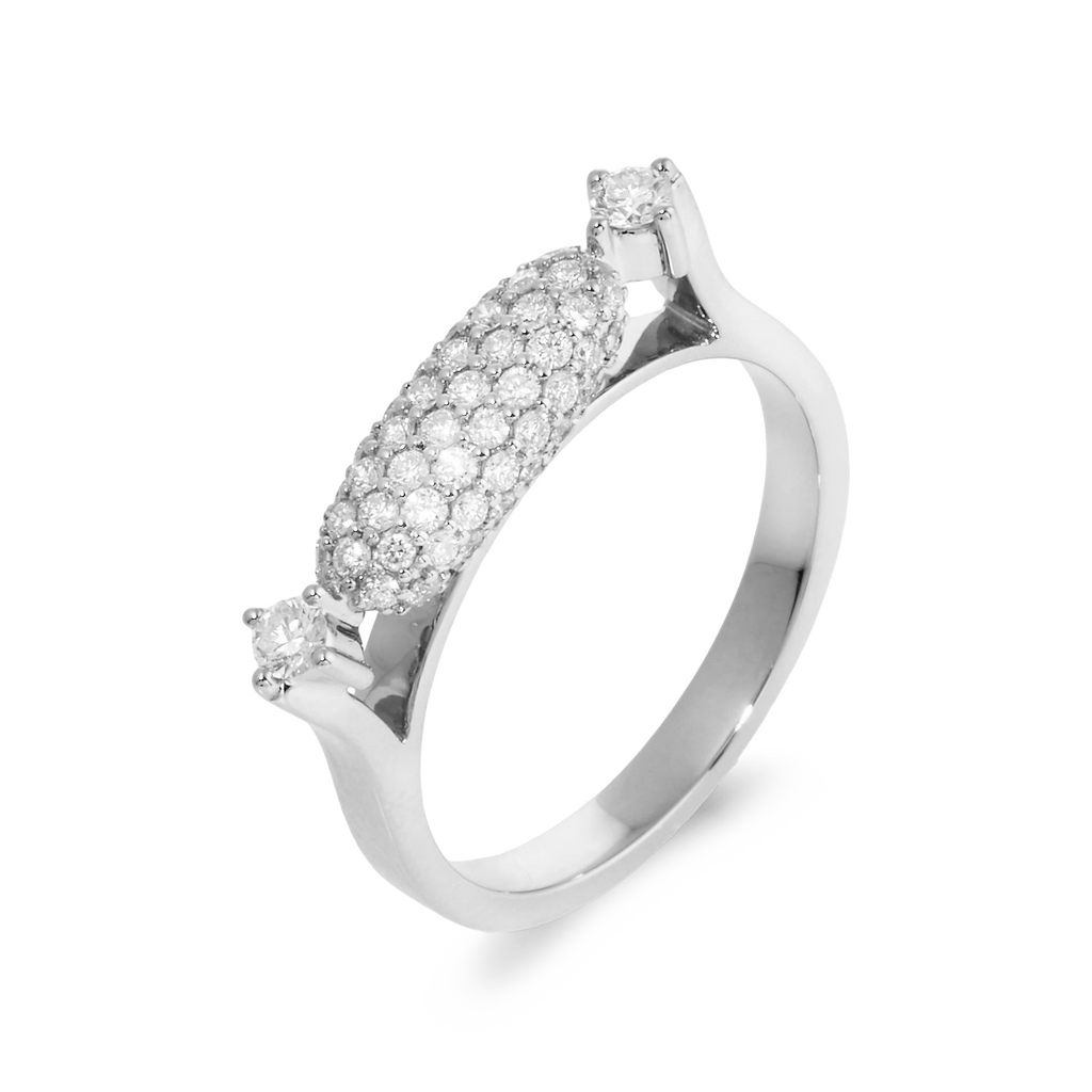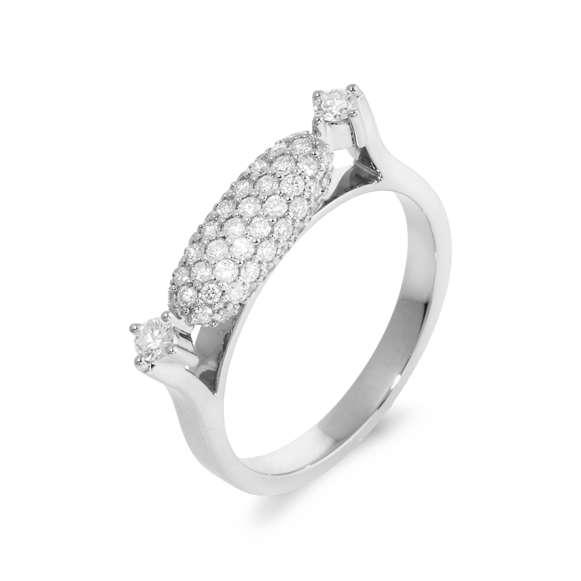 18K white gold ring, diamond color GH, clarity SI 0.44 ct, 54 stones