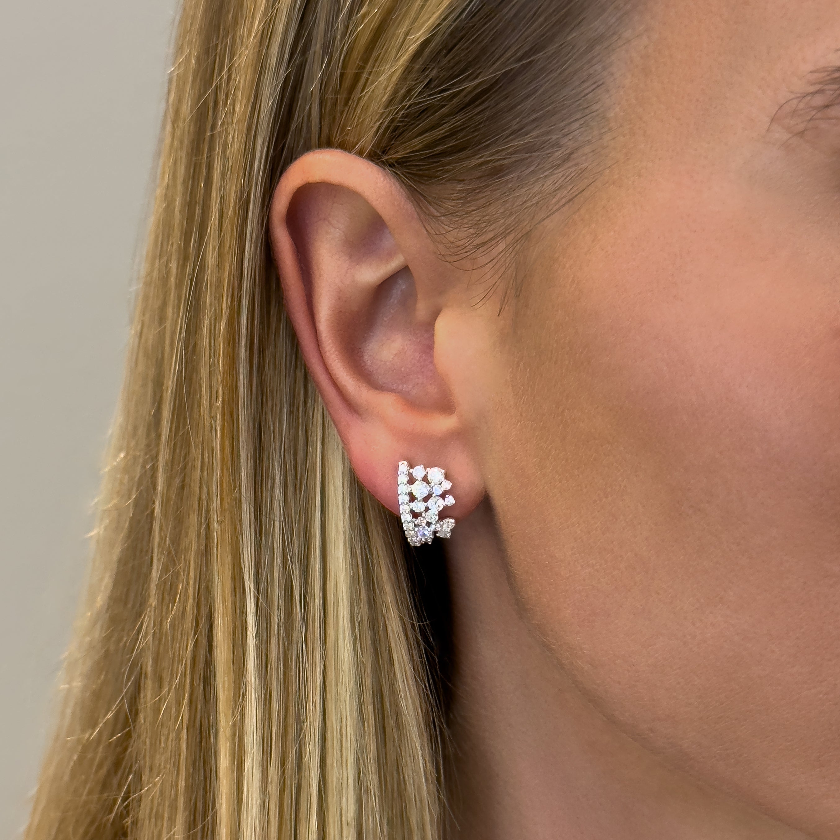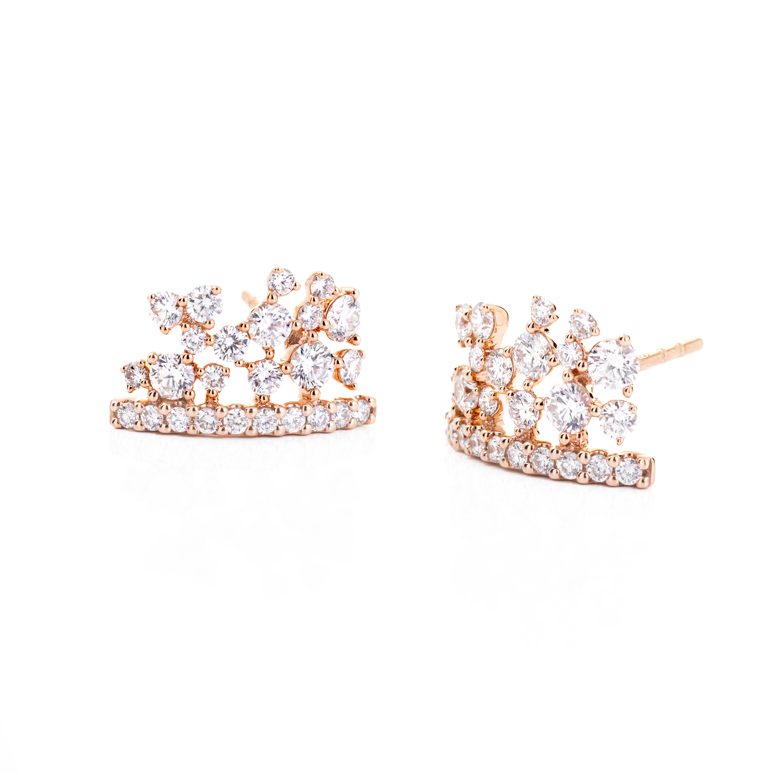 18K rose gold earring, diamond color GH, clarity SI 1.32 ct, 50 stones, pressure clasp