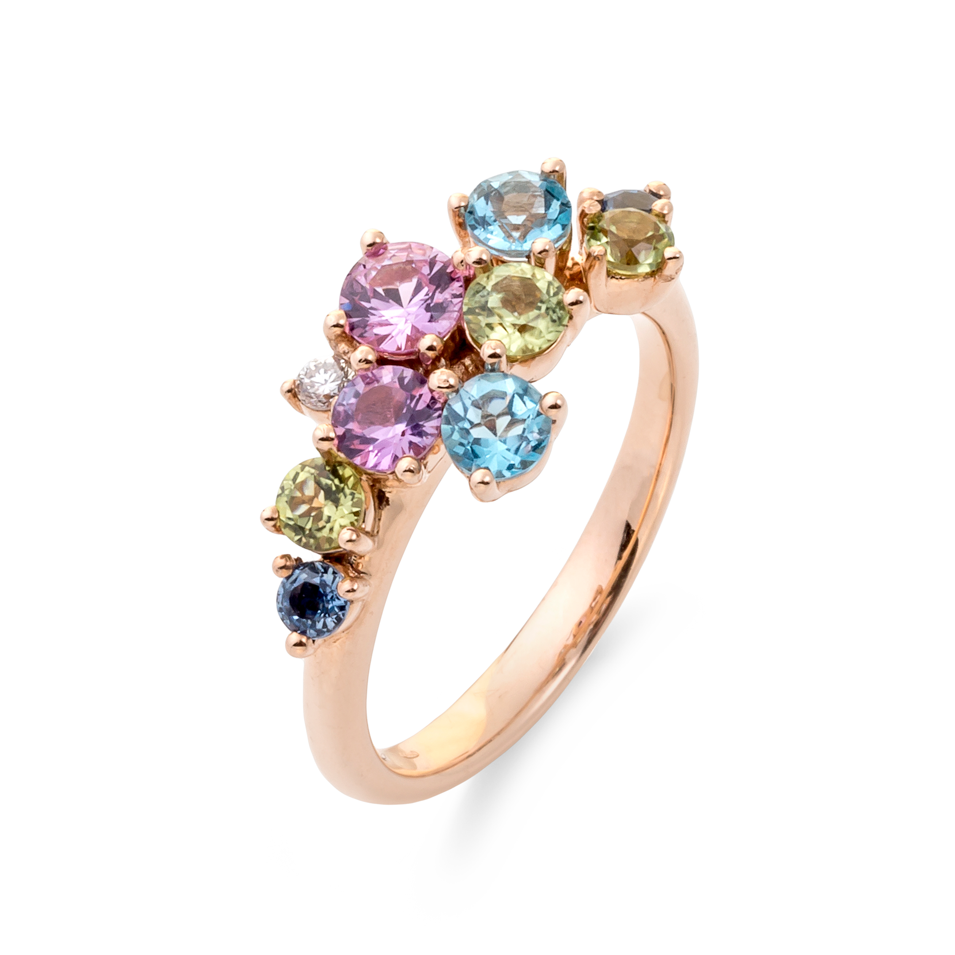 Collection Sunset Ring Gold, Diamond 0.04 ct, peridot and sapphire, designer