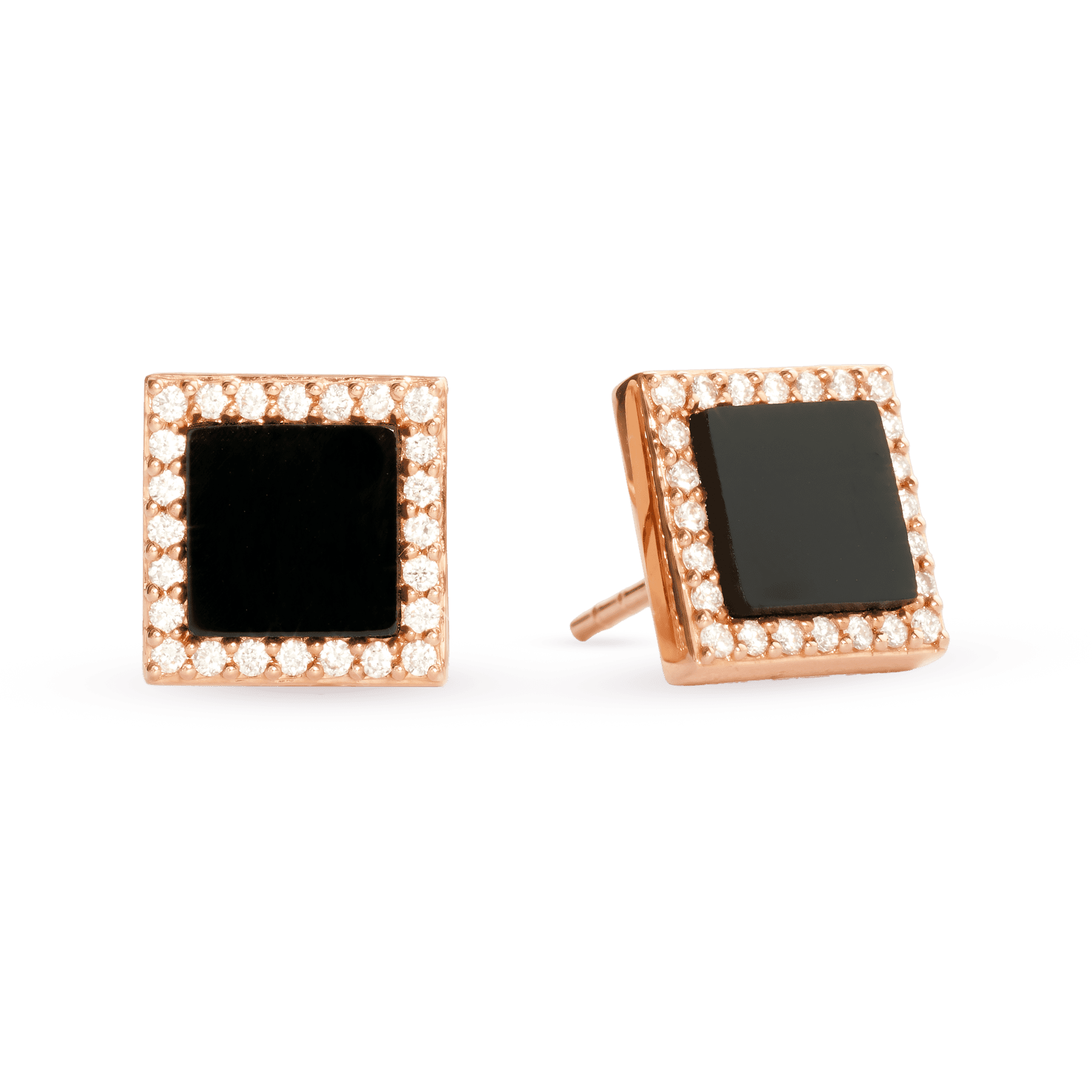18K rose gold earring, diamond color GH, clarity SI 0.29 ct, onyx, 48 stones, pressure clasp