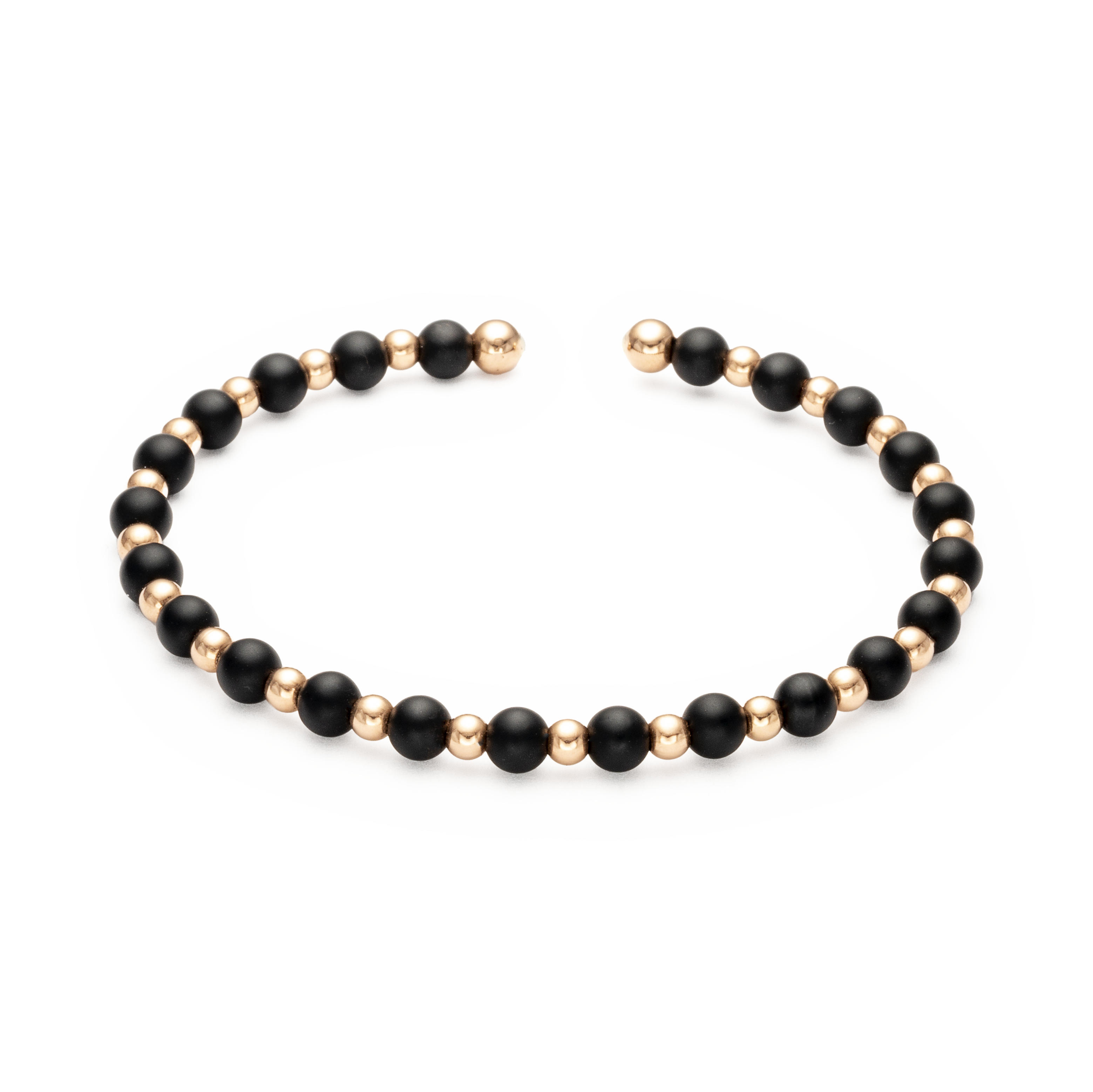 18K rose gold bracelet, onyx, 4mm bead 3mm bead