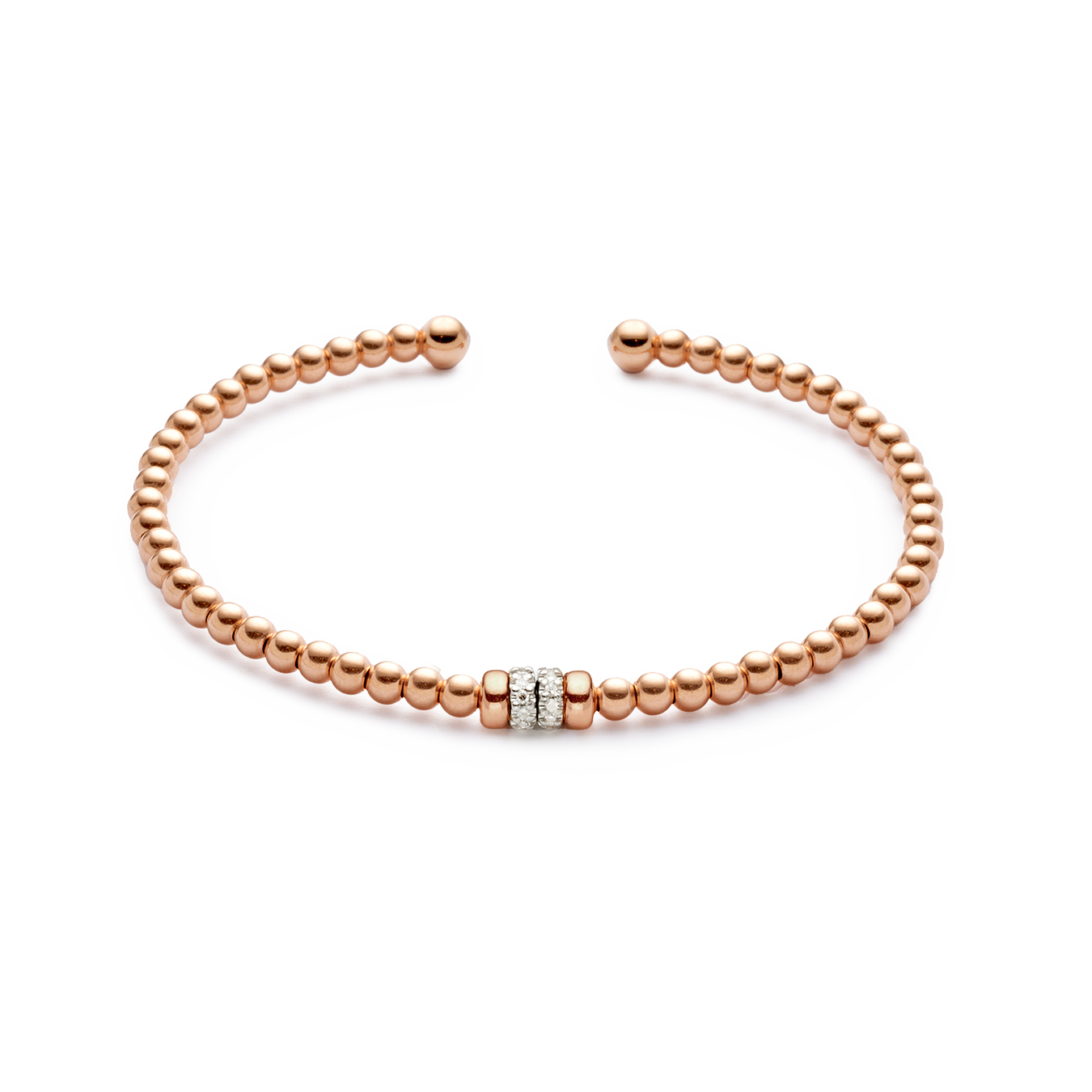 18K rose gold bracelet, diamond color HI, clarity SI 0.09 ct, 24 stones, 4mm bead 3mm bead