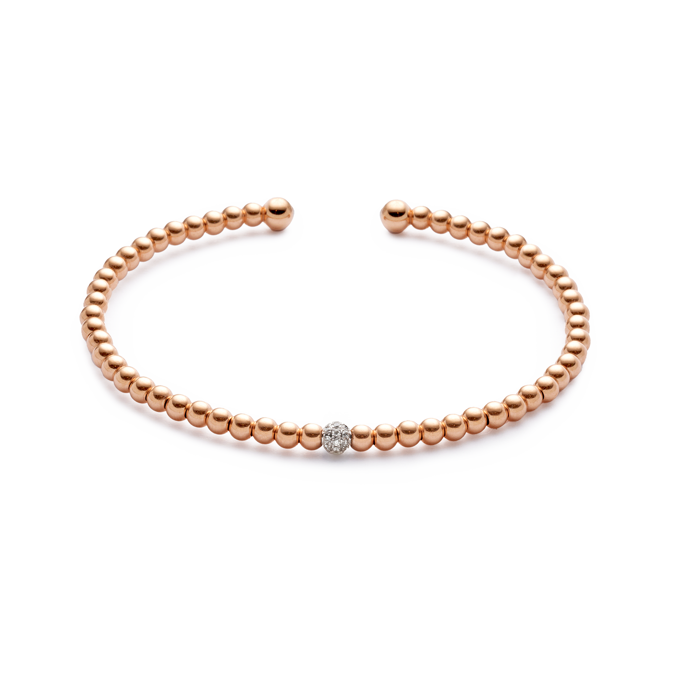 18K rose gold bracelet, diamond color GH, clarity SI 0.11 ct, 18 stones, 4mm bead 3mm bead