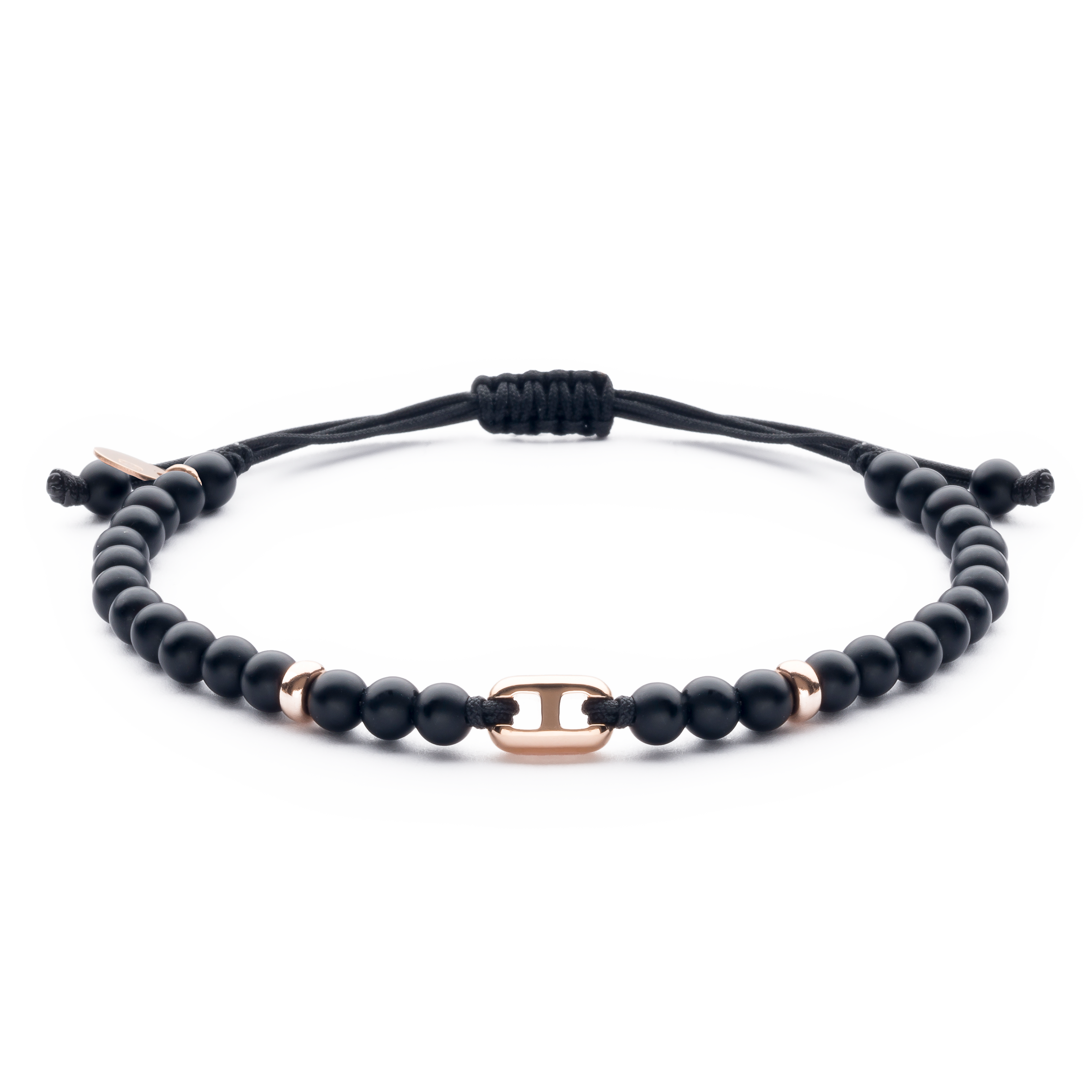 18K rose gold bracelet, onyx, link, Adjustable nylon cord from 15cm to 25cm