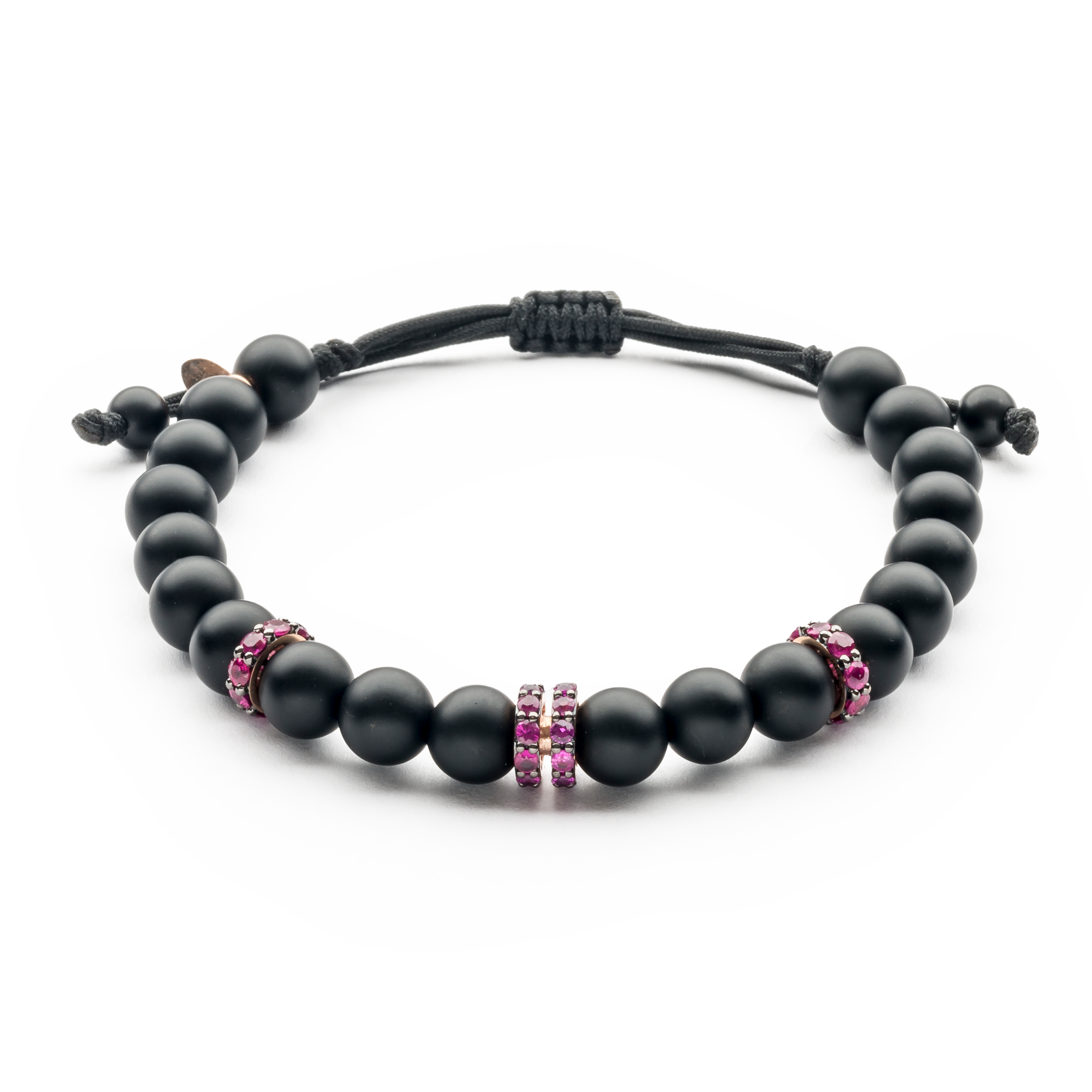 18K rose gold bracelet, onyx, double-wheel ruby, Adjustable nylon cord from 15cm to 25cm
