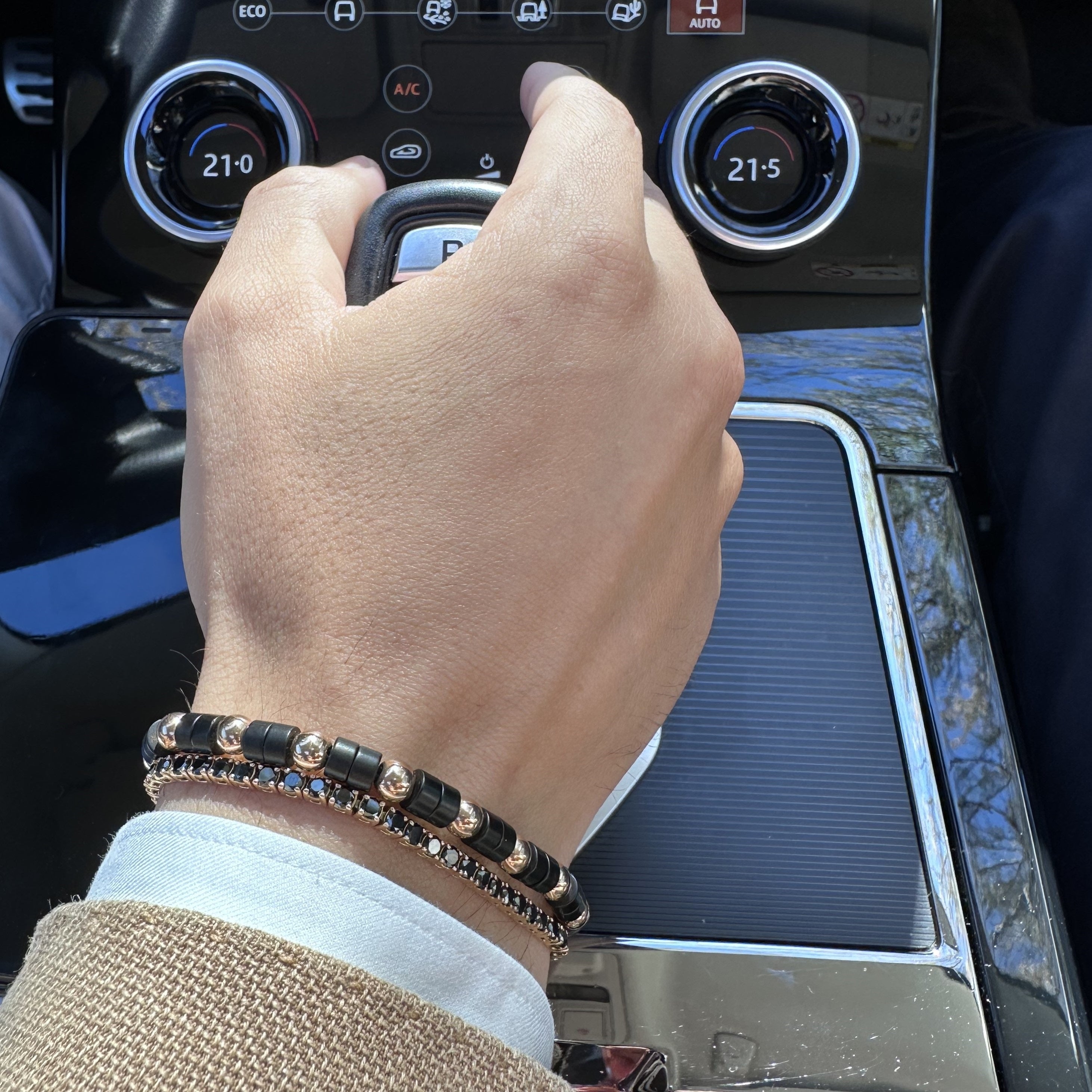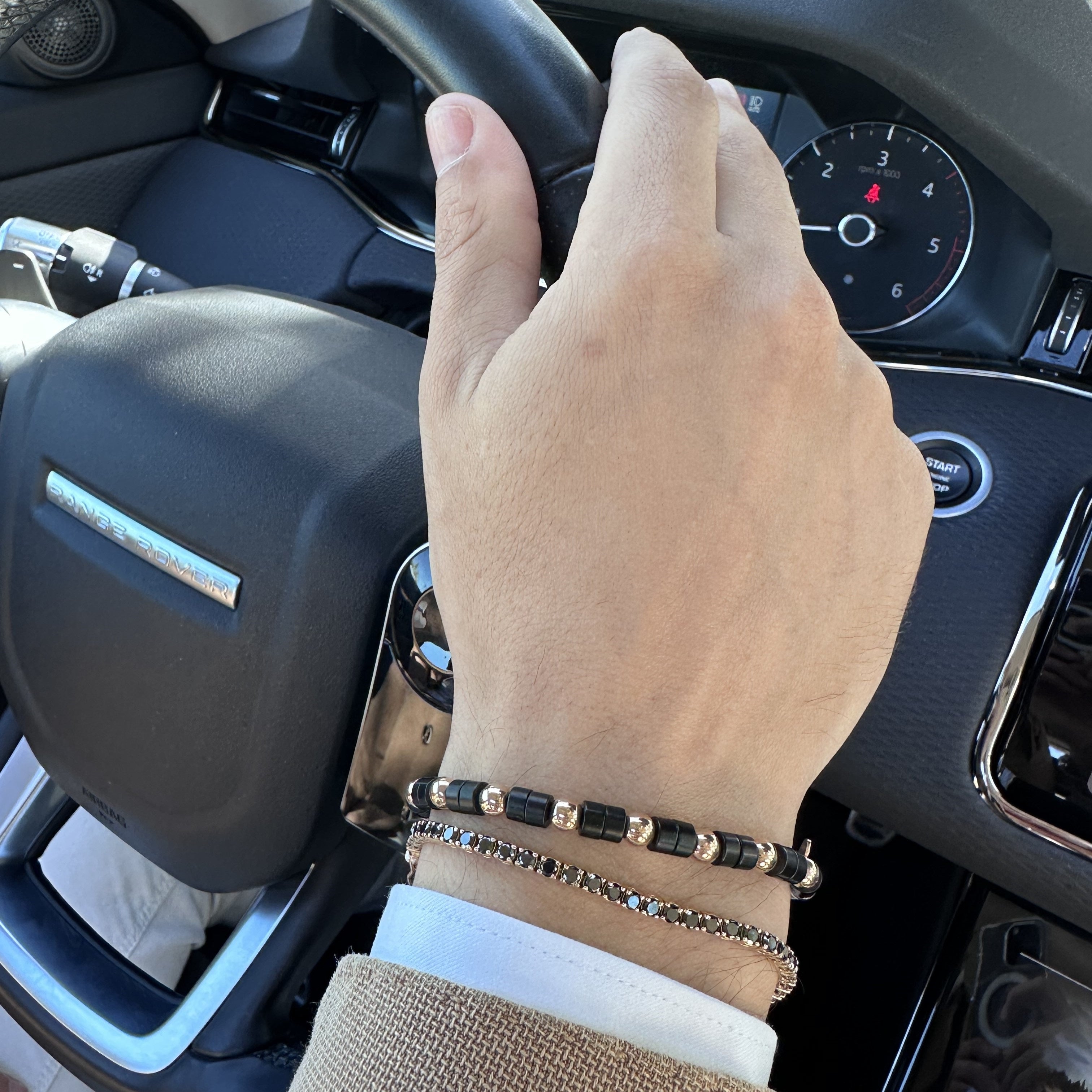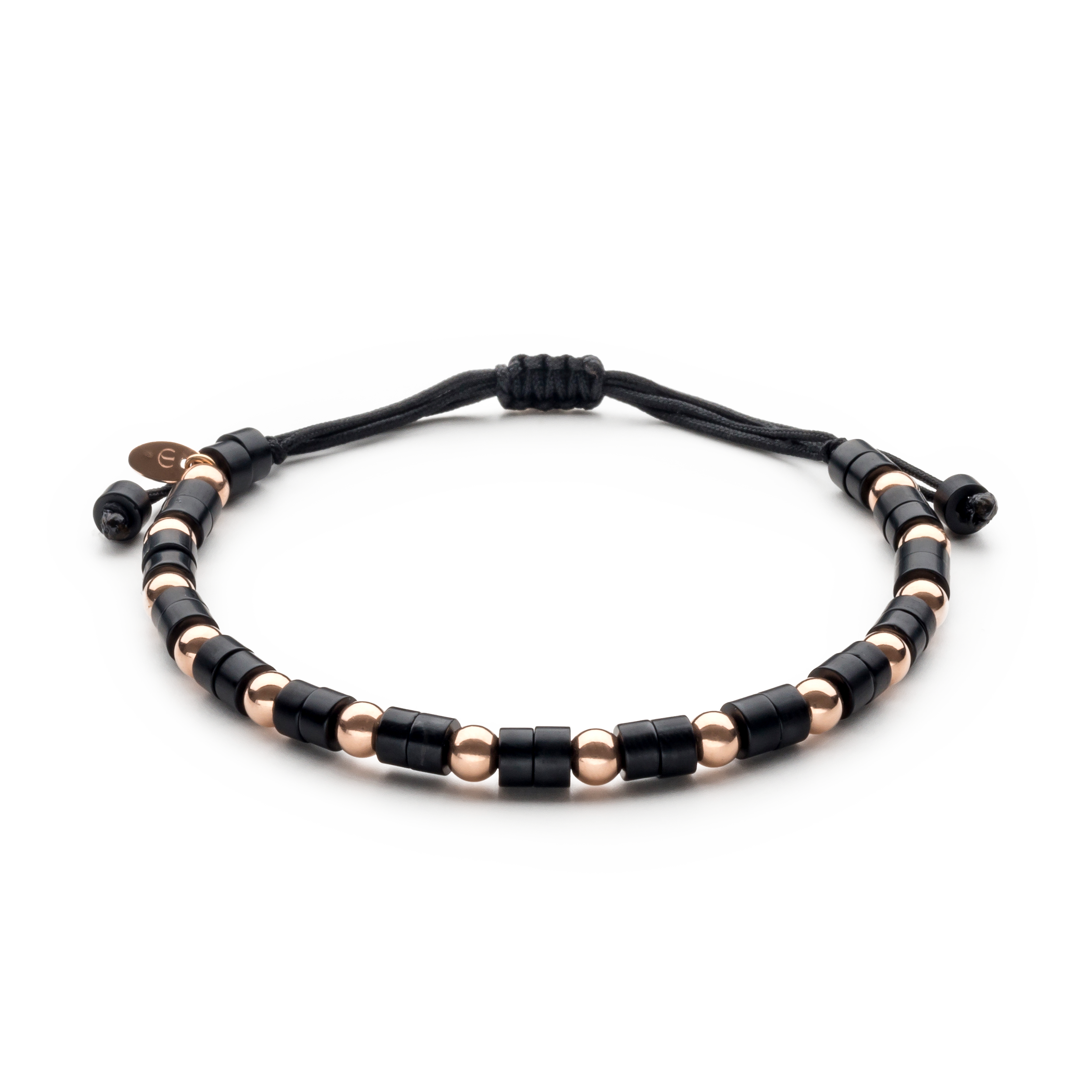 18K rose gold bracelet, onyx, 5mm bead, Adjustable nylon cord from 15cm to 25cm