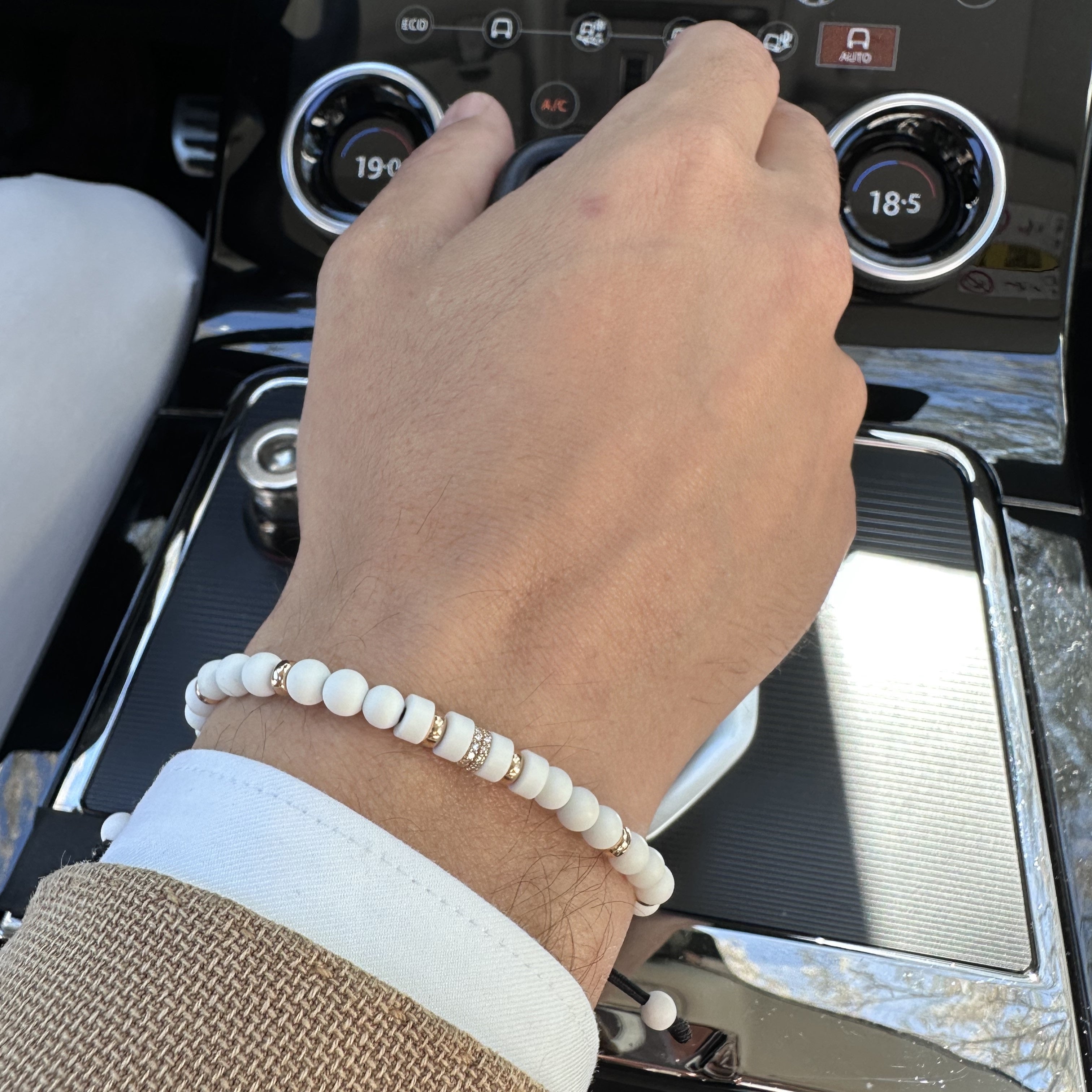 18K rose gold bracelet, agate p, 28 stones, 8/8 cut diamond wheel, Adjustable nylon cord from 15cm to 25cm