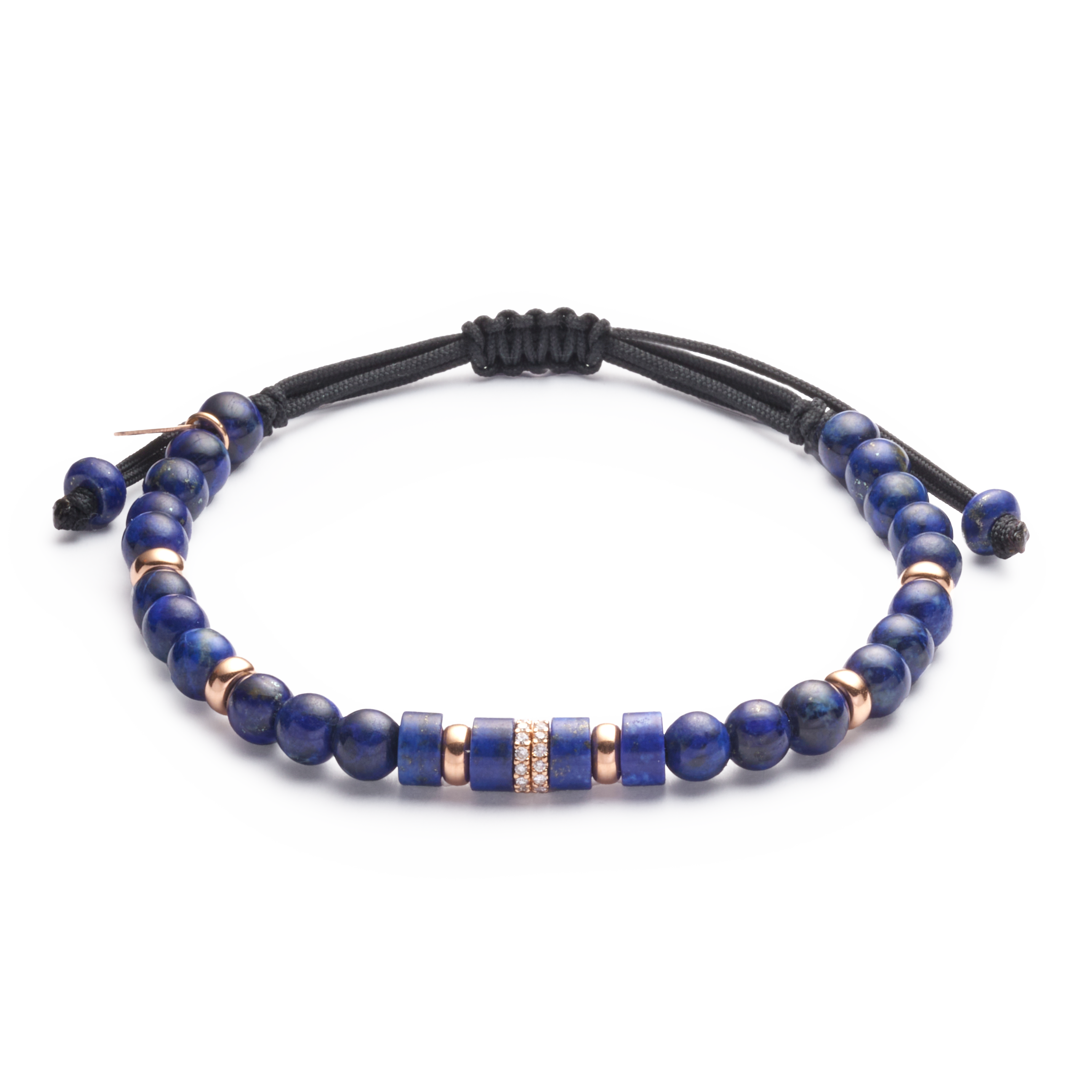 18K rose gold bracelet, lapis lazuli, 28 stones, 8/8 cut diamond wheel, Adjustable nylon cord from 15cm to 25cm