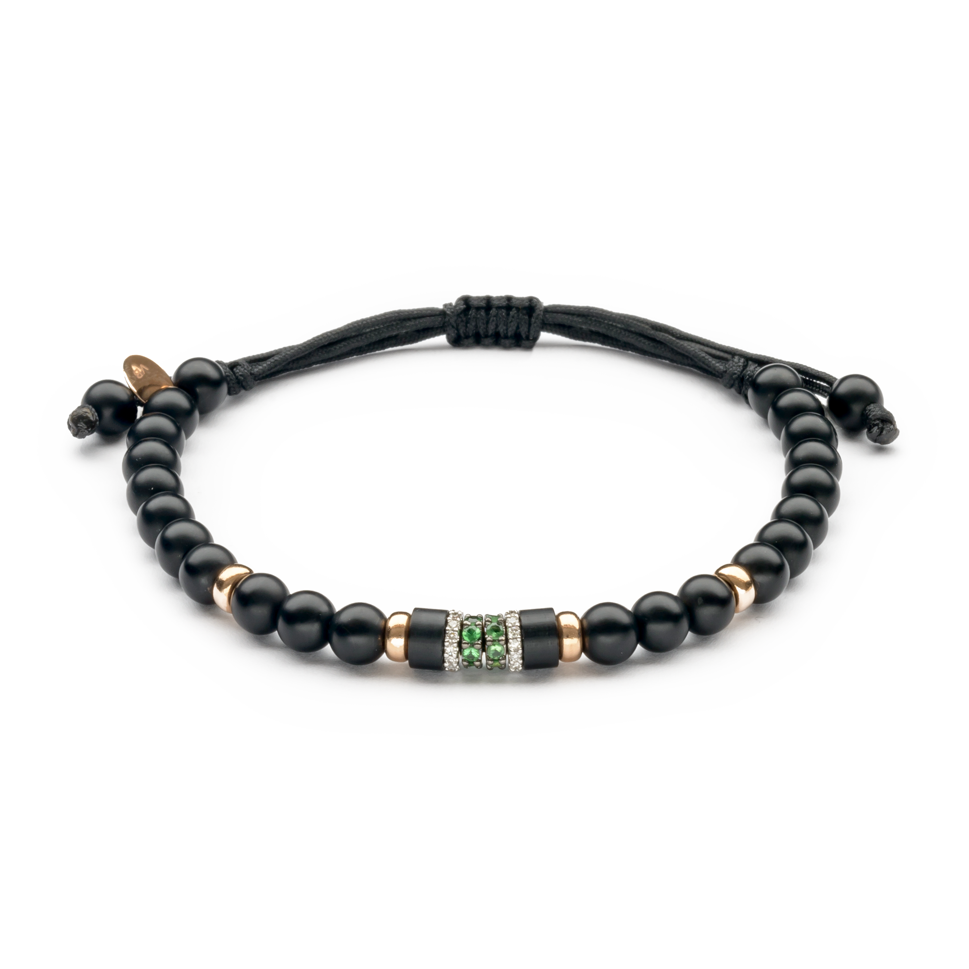 18K rose gold bracelet, onyx, 30 stones, 8/8 cut diamond wheel sapphire wheel, Adjustable nylon cord from 15cm to 25cm