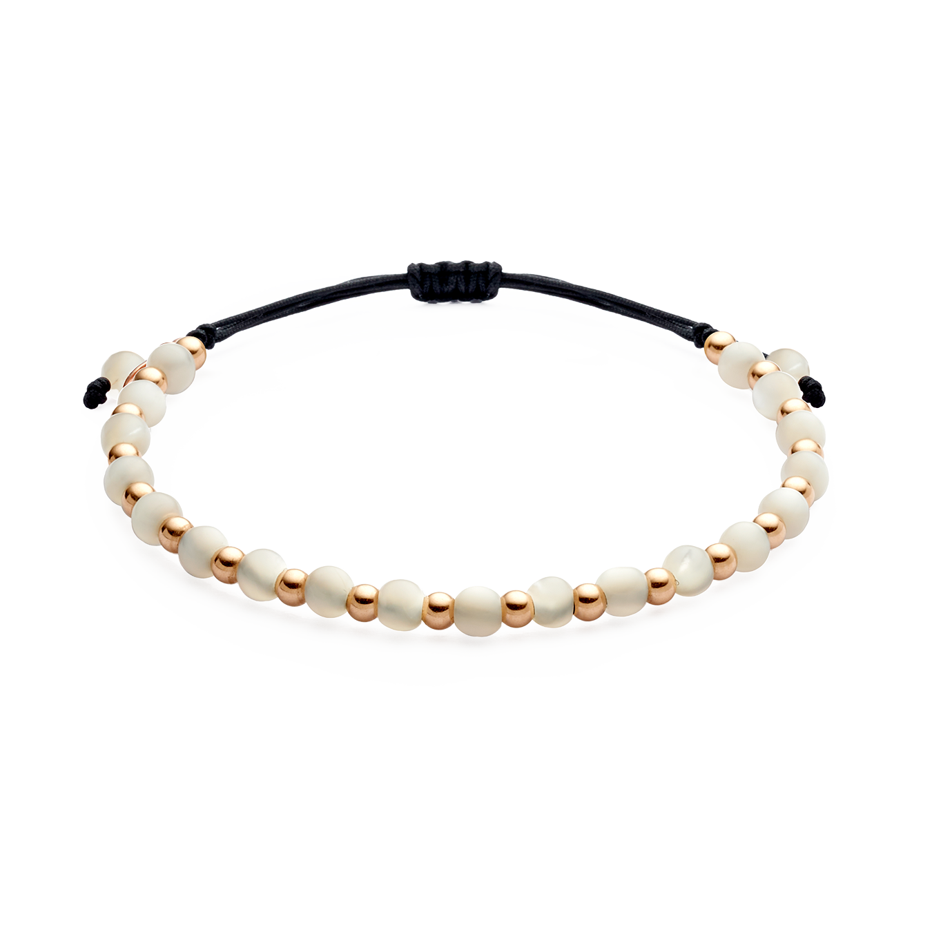 18K rose gold bracelet, mother of pearl, 3mm bead, Adjustable nylon cord from 15cm to 25cm
