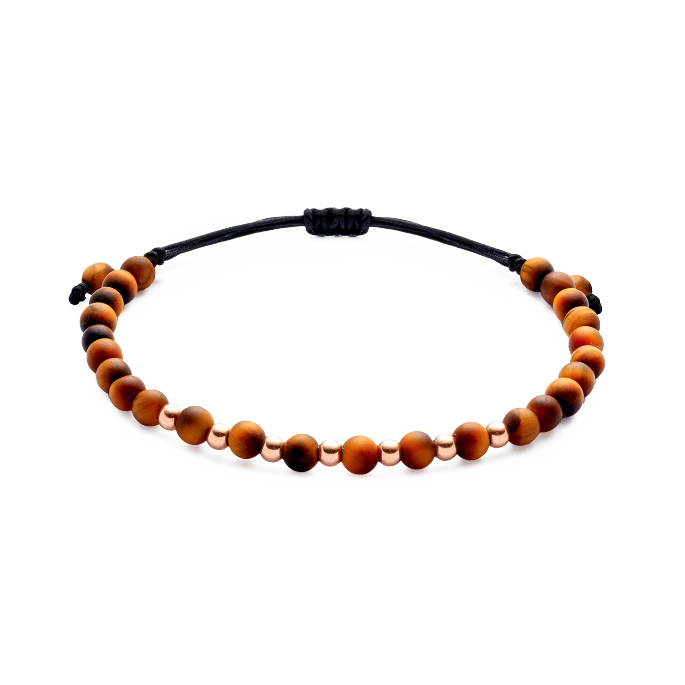 18K rose gold bracelet, tiger eye, 3mm bead, Adjustable nylon cord from 15cm to 25cm
