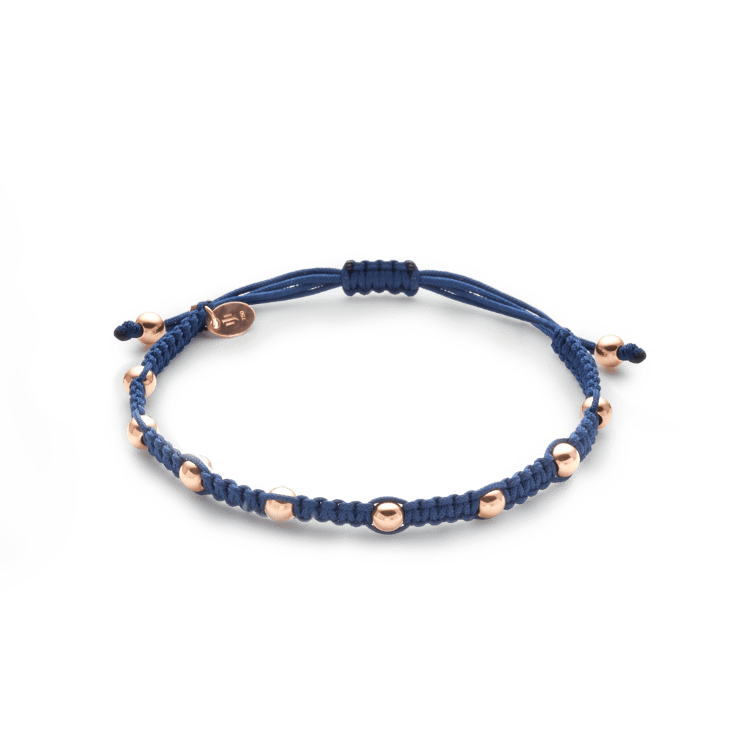 18K rose gold bracelet, 4mm bead, Adjustable nylon cord from 15cm to 25cm