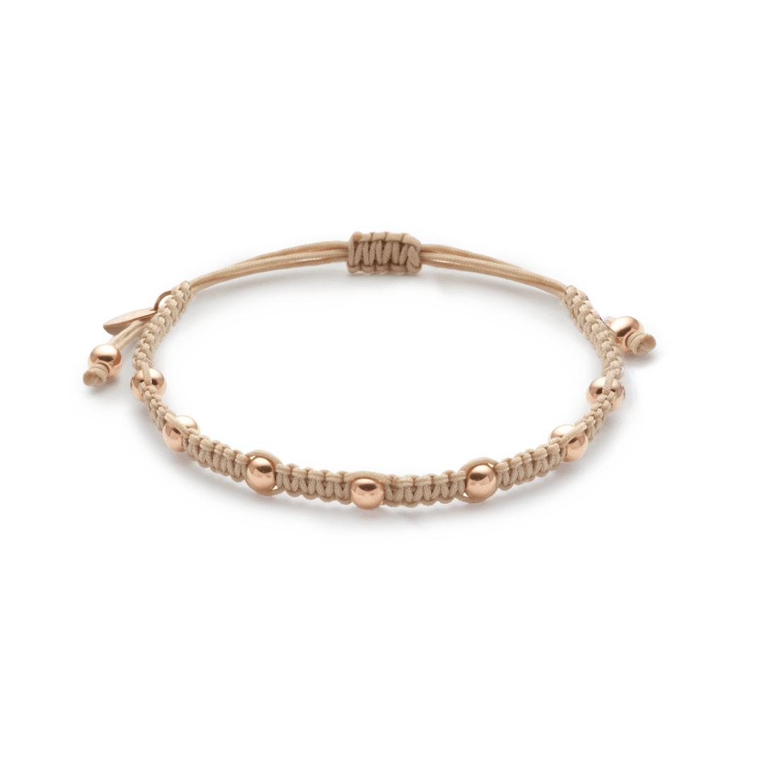 18K rose gold bracelet, 4mm bead, Adjustable nylon cord from 15cm to 25cm