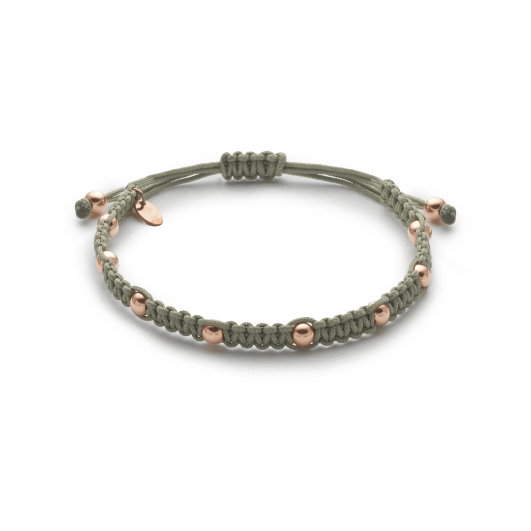 18K rose gold bracelet, 4mm bead, Adjustable nylon cord from 15cm to 25cm