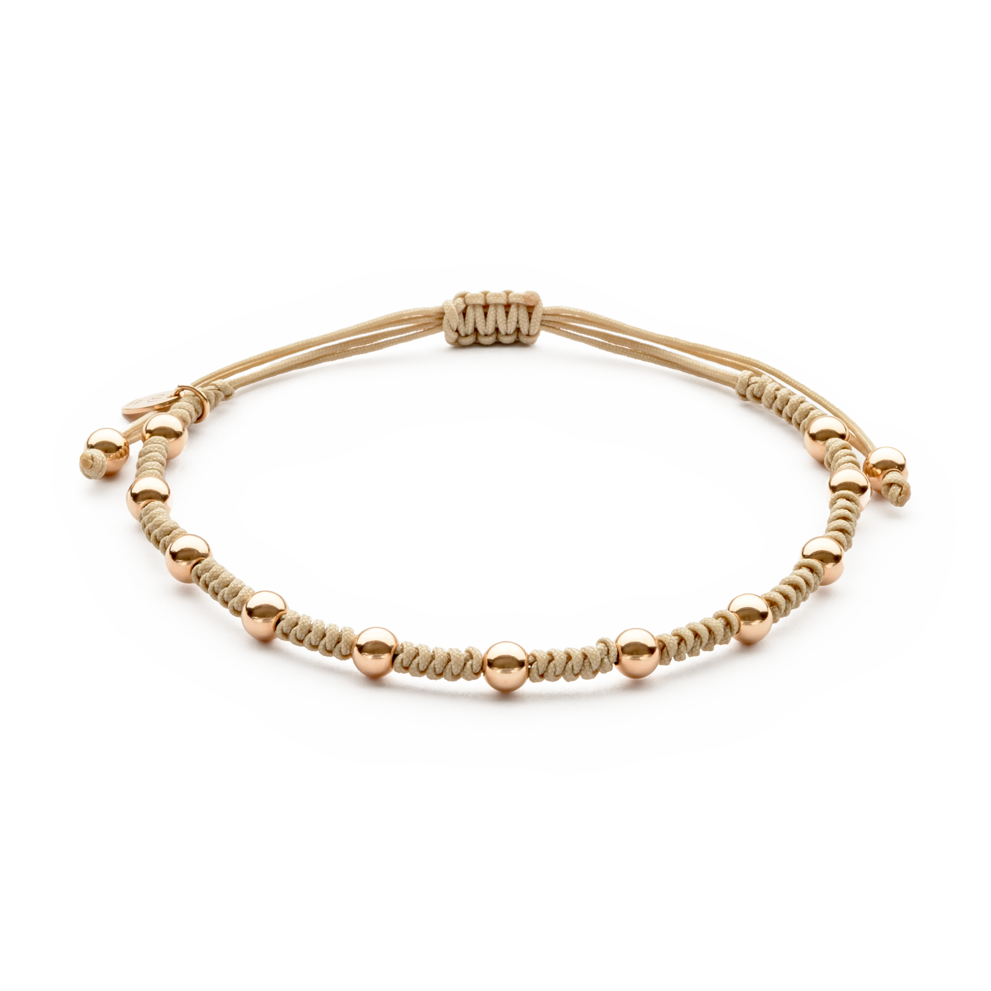18K rose gold bracelet, 4mm bead, Adjustable nylon cord from 15cm to 25cm