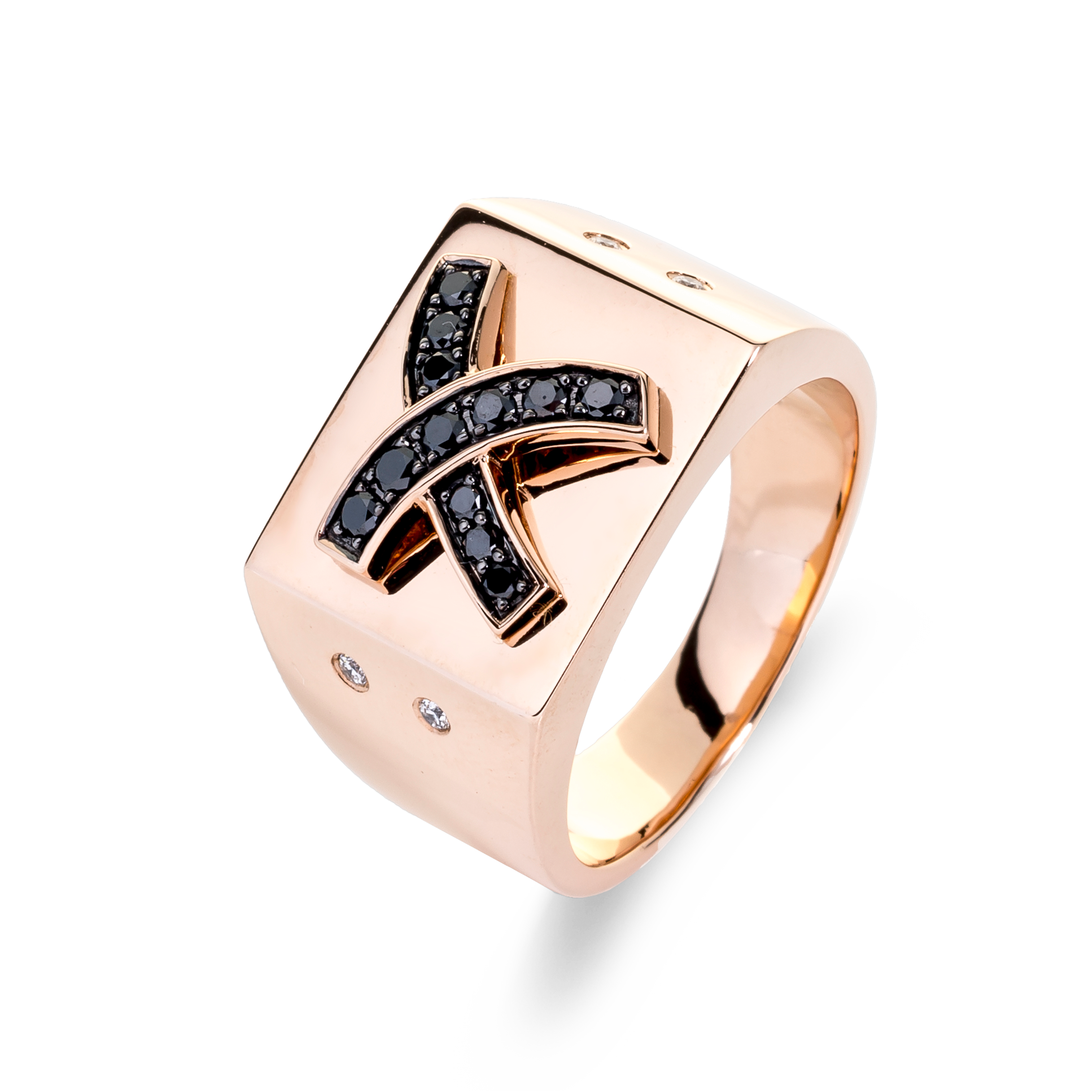 Collection Wolf Men rings & surf Ring Gold, Diamond 0.06 ct and black diamond 0.29 ct, signet