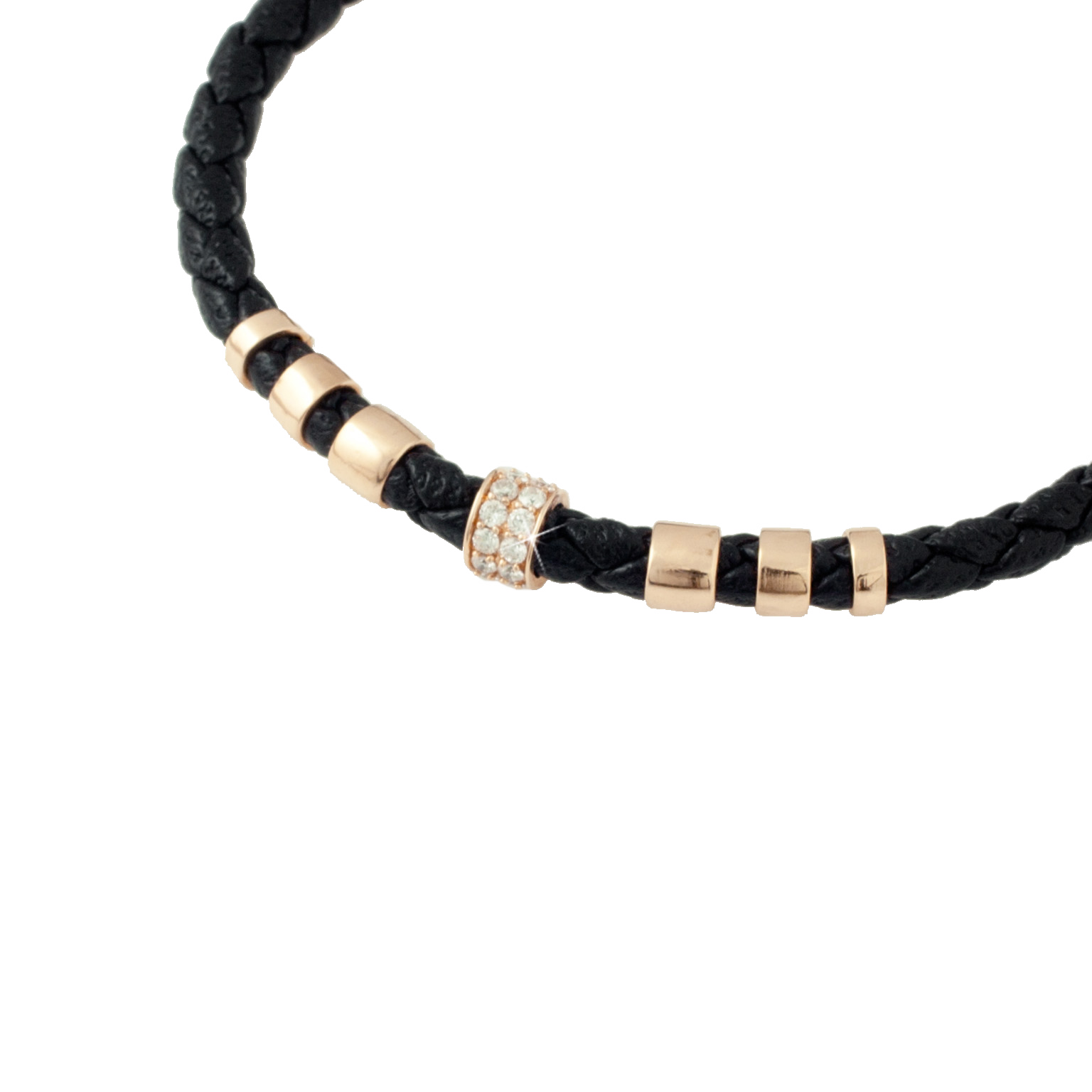 18K rose gold bracelet, diamond color GH, clarity SI 0.20 ct, cord, 14 stones