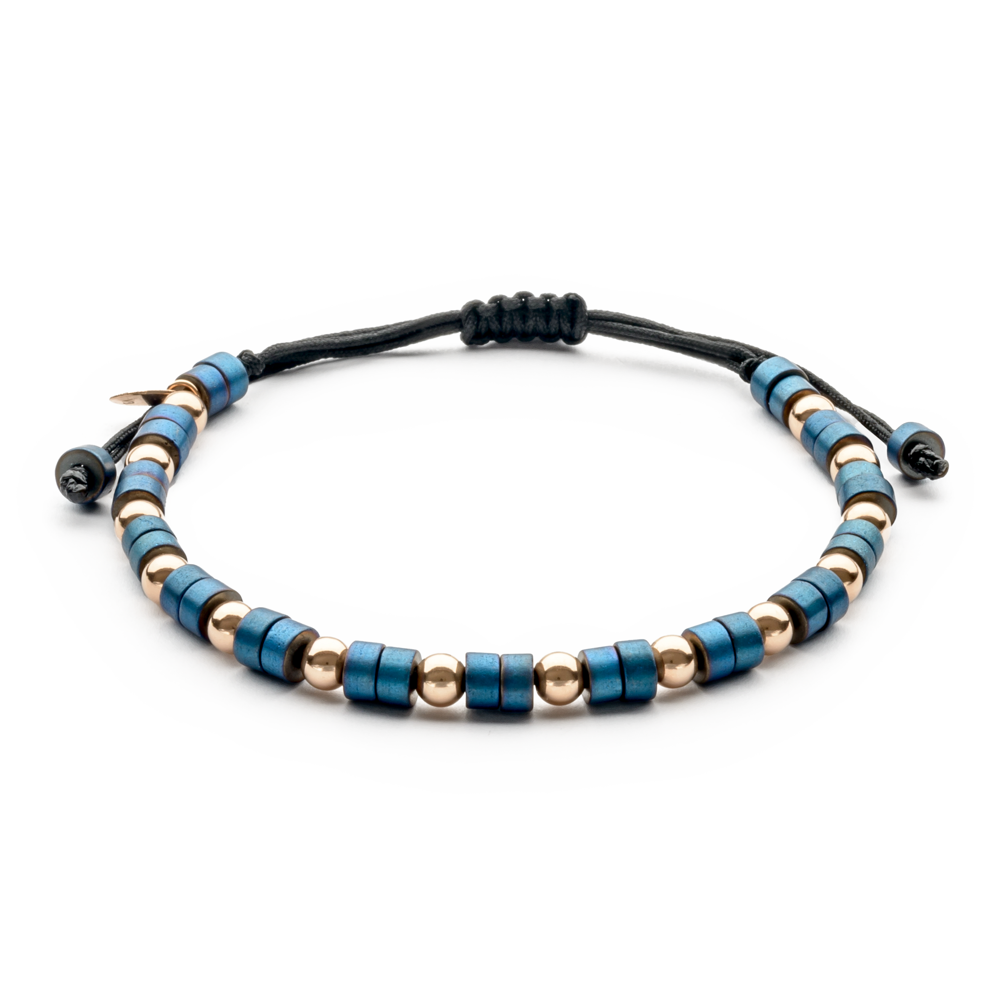 18K rose gold bracelet, hematite, 4mm bead, Adjustable nylon cord from 15cm to 25cm