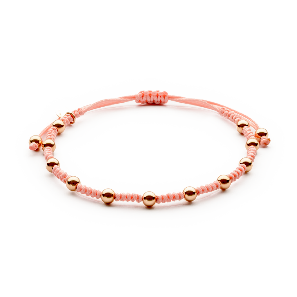18K rose gold bracelet, 4mm bead, Adjustable nylon cord from 15cm to 25cm