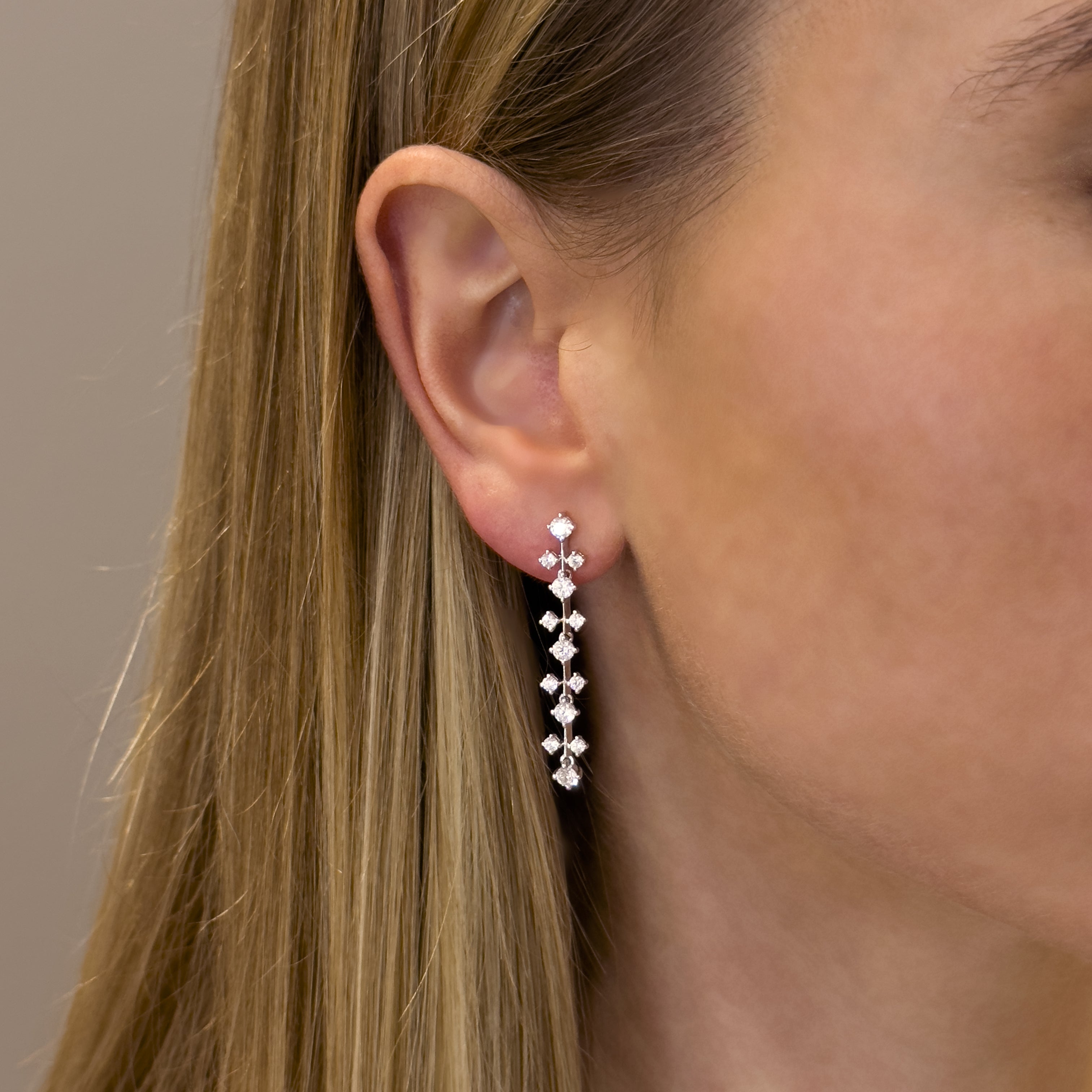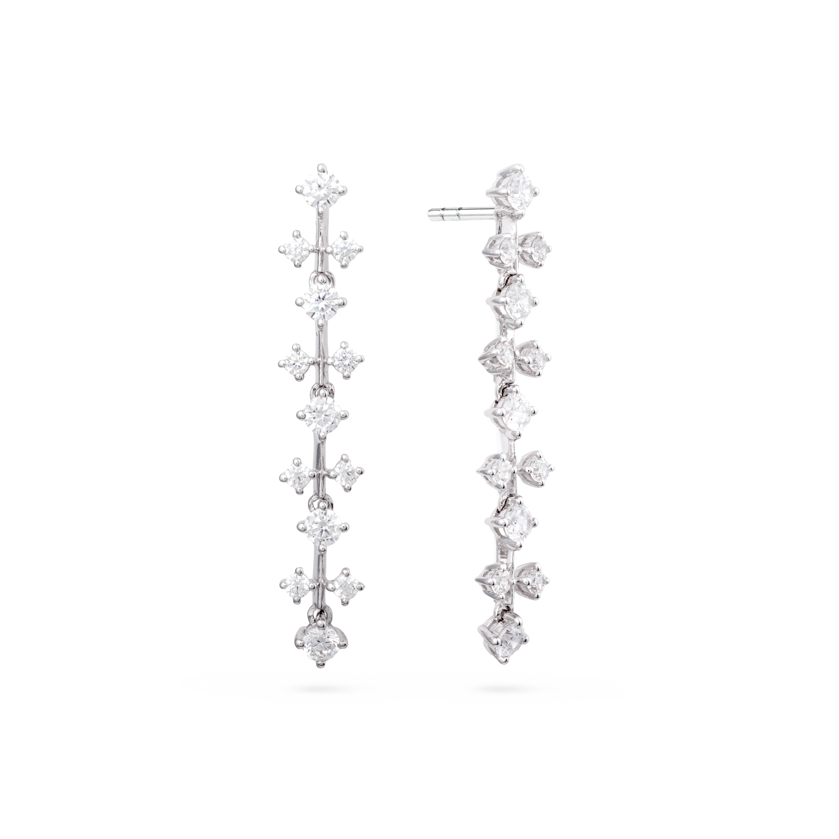 18K white gold earring, diamond color GH, clarity SI 1.67 ct, 26 stones, pressure clasp